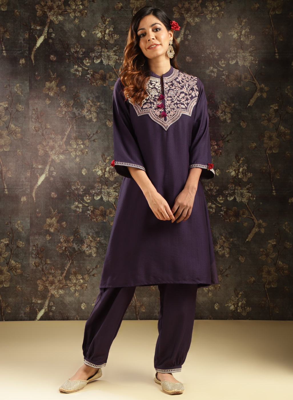 Solid Lavender Pleated Salwar with Hem Lace Work