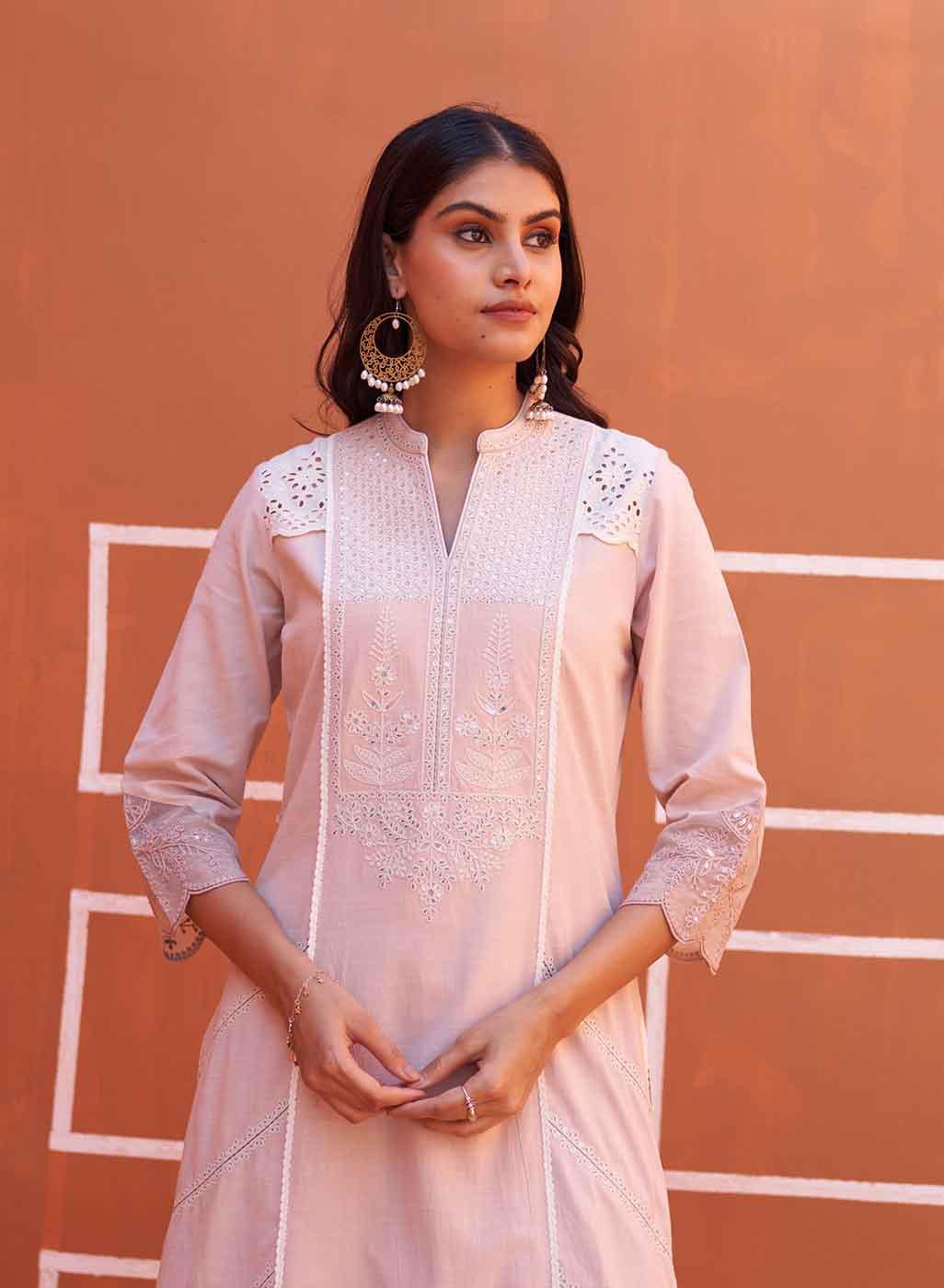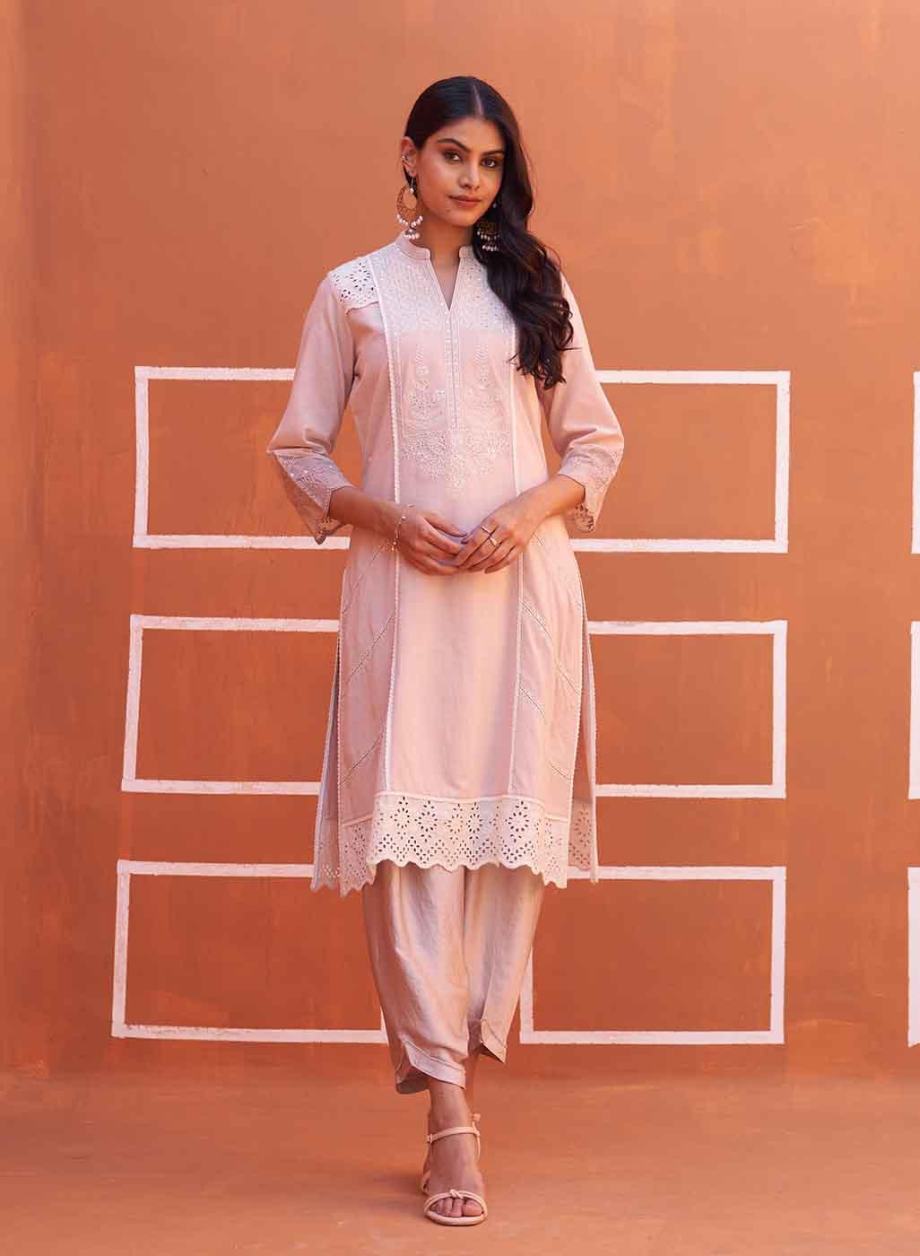 Shazia Beige Cotton Relaxed Fit Pants for Women