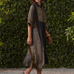 This Fiona Kaftan dress is a striking fusion of traditional craftsmanship and contemporary flair. Crafted from a soft, breathable rayon, it flows gracefully, embracing you in a loose, relaxed fit that offers unmatched comfort. The rich hue of deep red creates a dramatic canvas, enhanced by the all-over printed Ajrakh pattern.