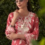 This June Co-ord set is a breath of fresh air, perfect for summer evenings that call for effortless grace and comfort. The kurta, crafted from lightweight rayon slub, features a vibrant all-over tropical-inspired print that exudes warmth and energy. This Co-ord set features mirror work paired with intricate thread embroidery and shimmering sequin highlights.