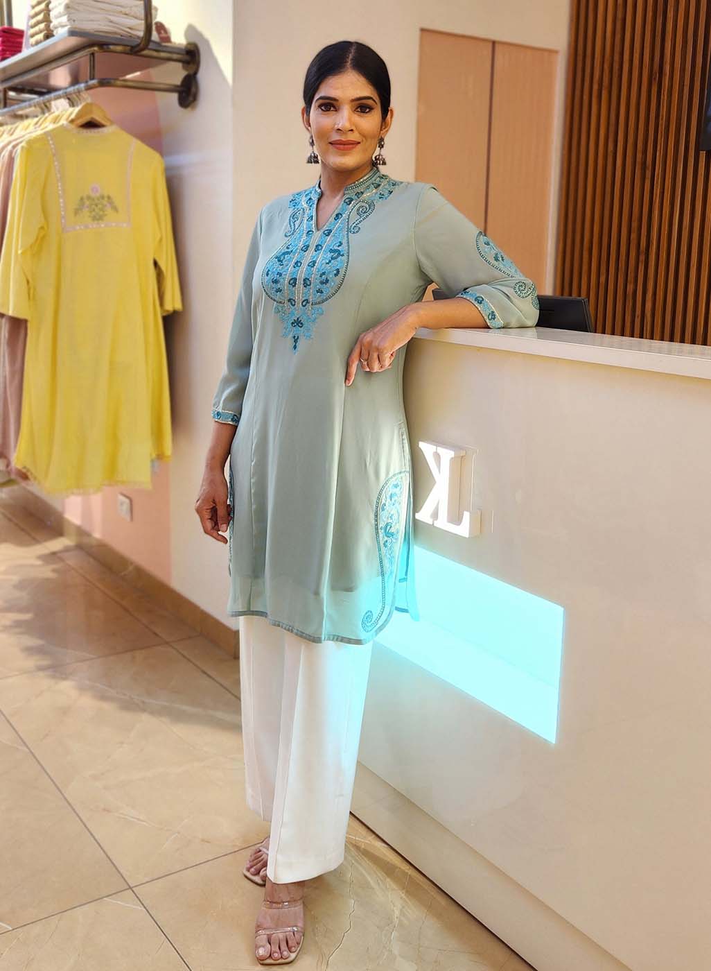 Yellow A-line Embroidered Georgette Kurta Set for Women