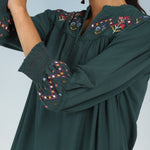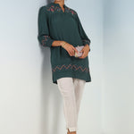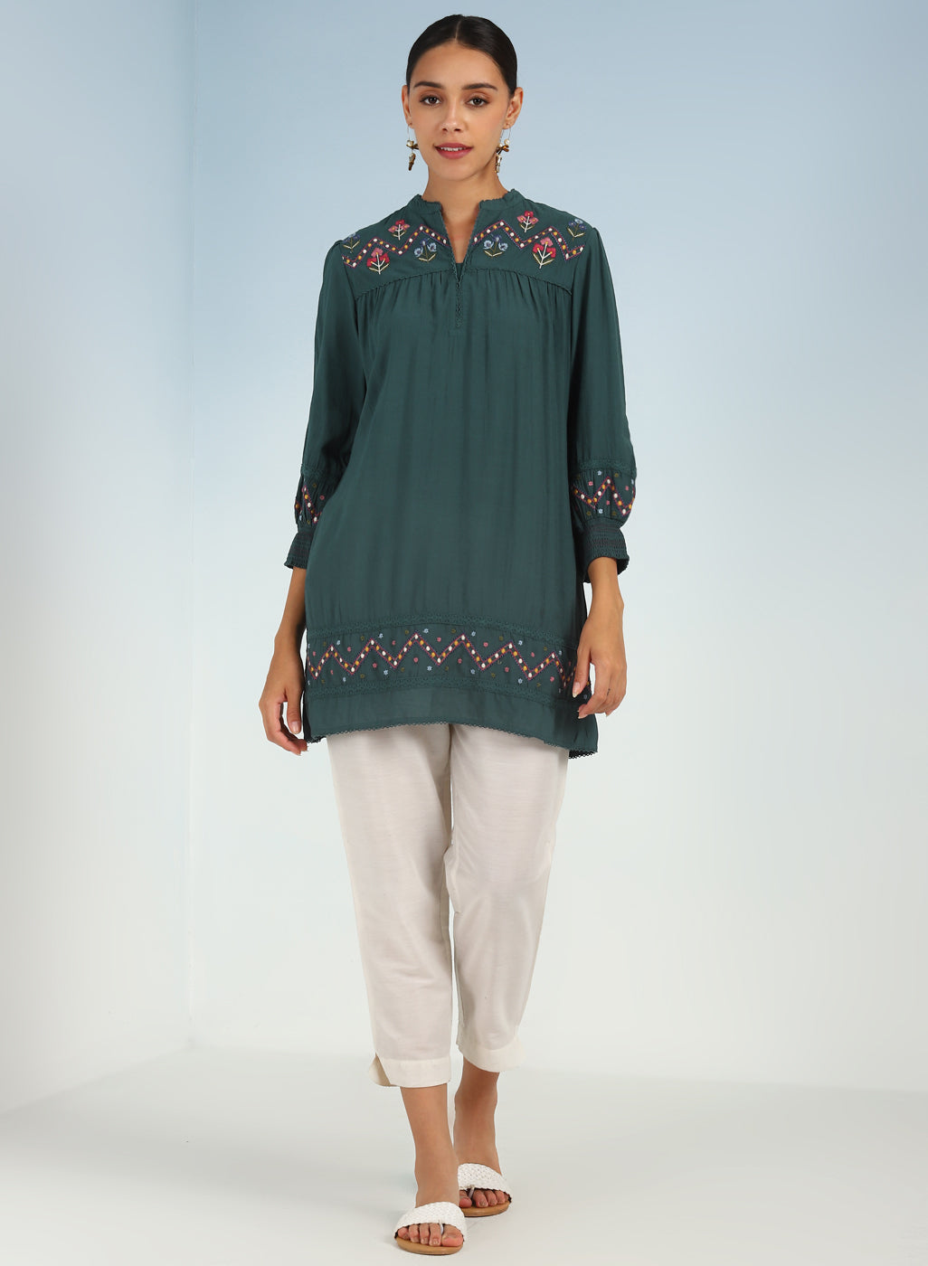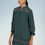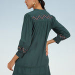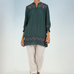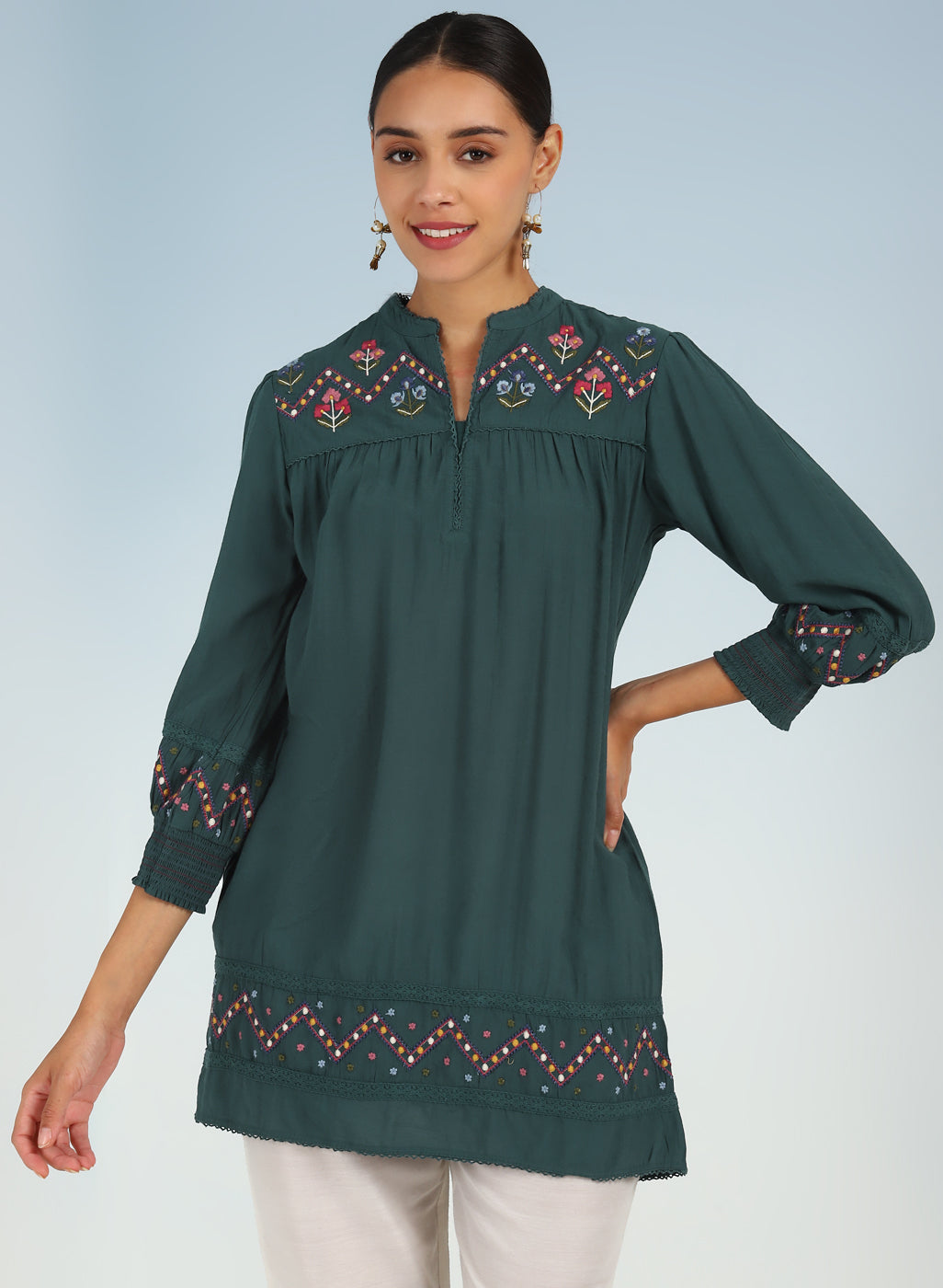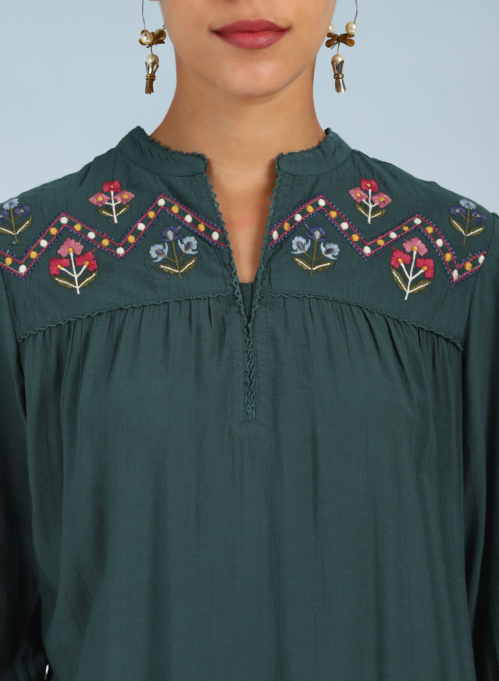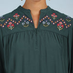 • Look effortlessly stylish in this Green A-line shoulder yoke embroidered Tunic.