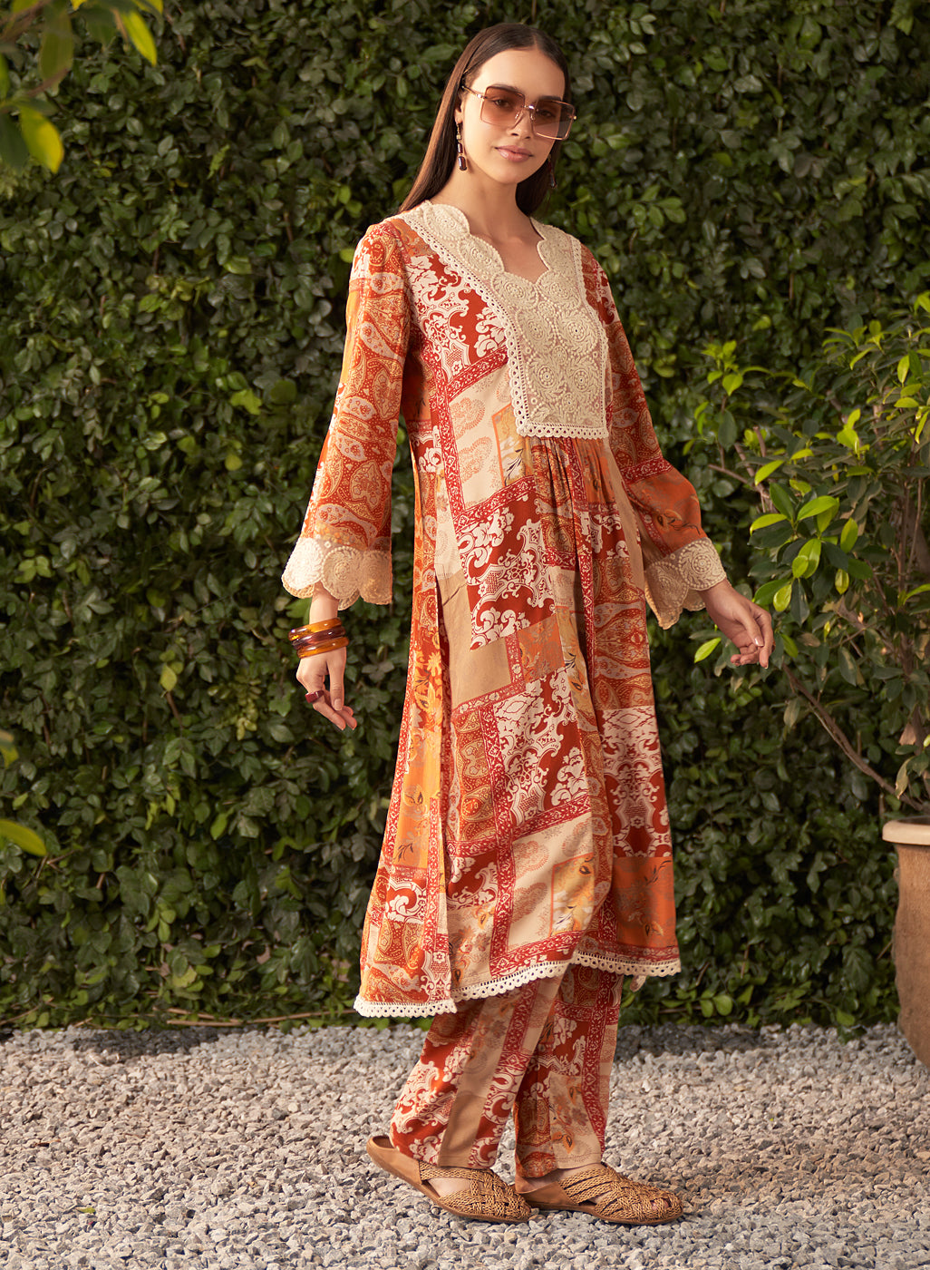 Rust Printed Rayon Kurta Set
