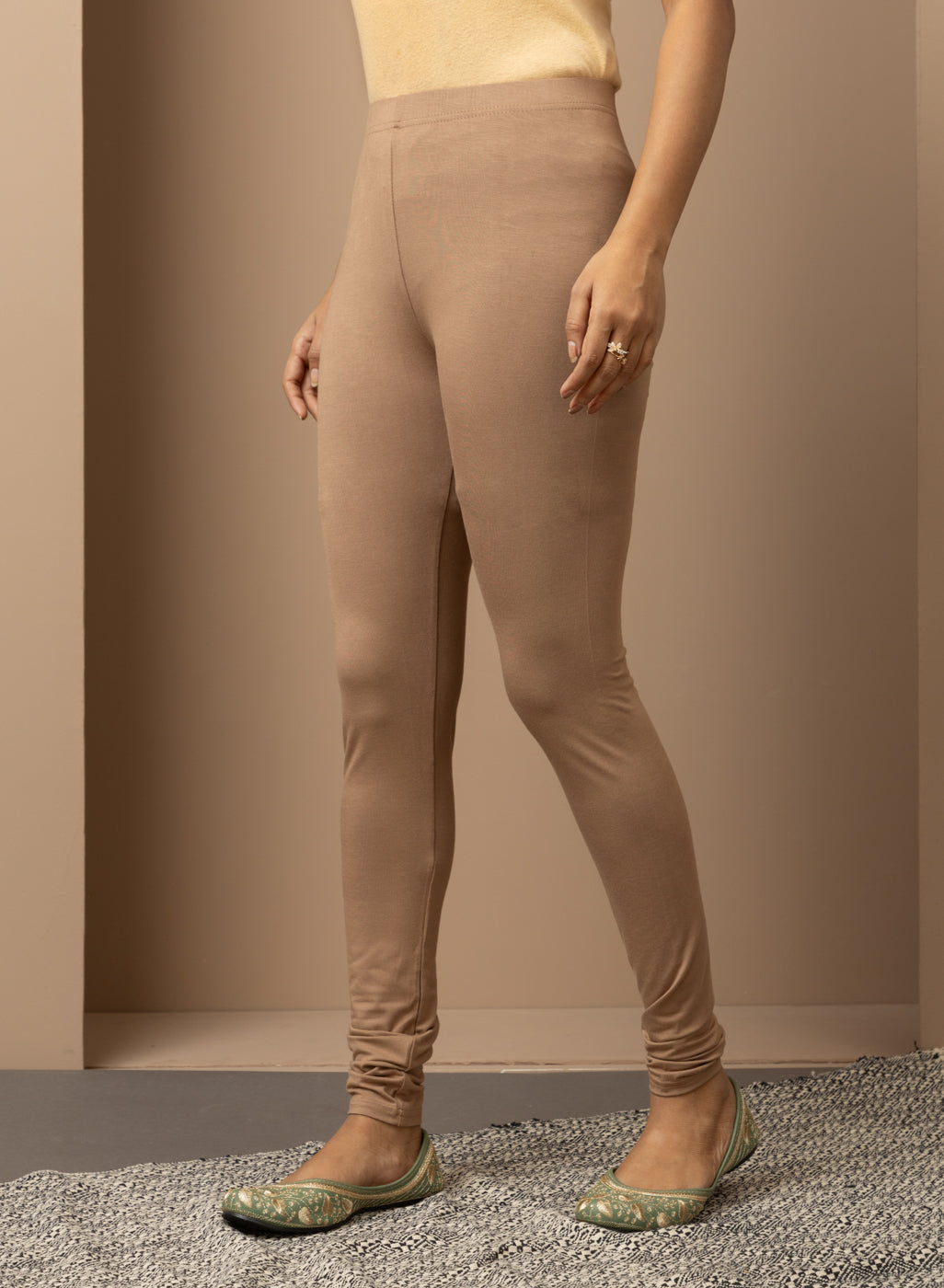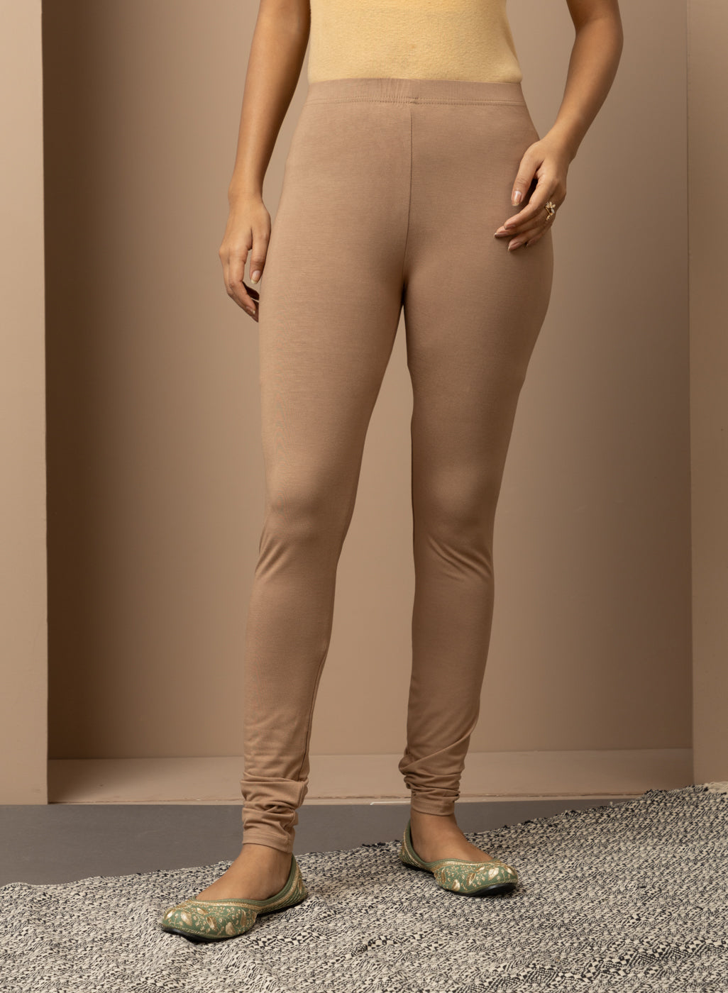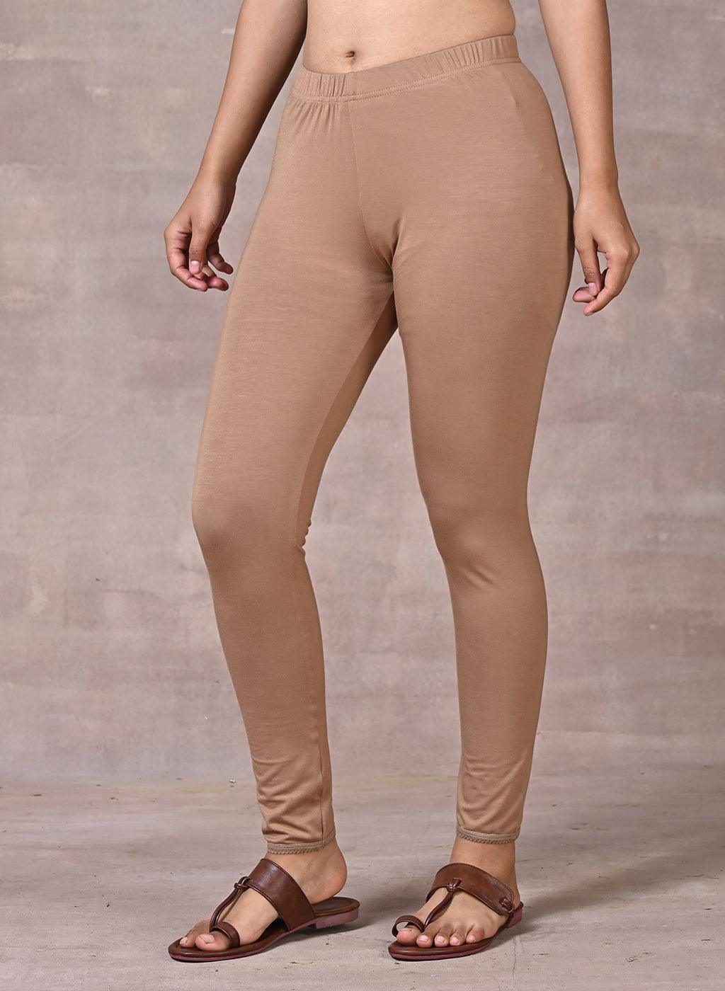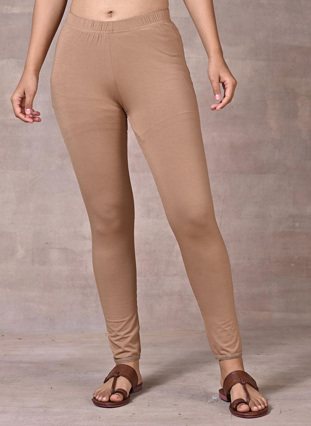 Sand Beige Ankle Length Plain Legging - Lakshita