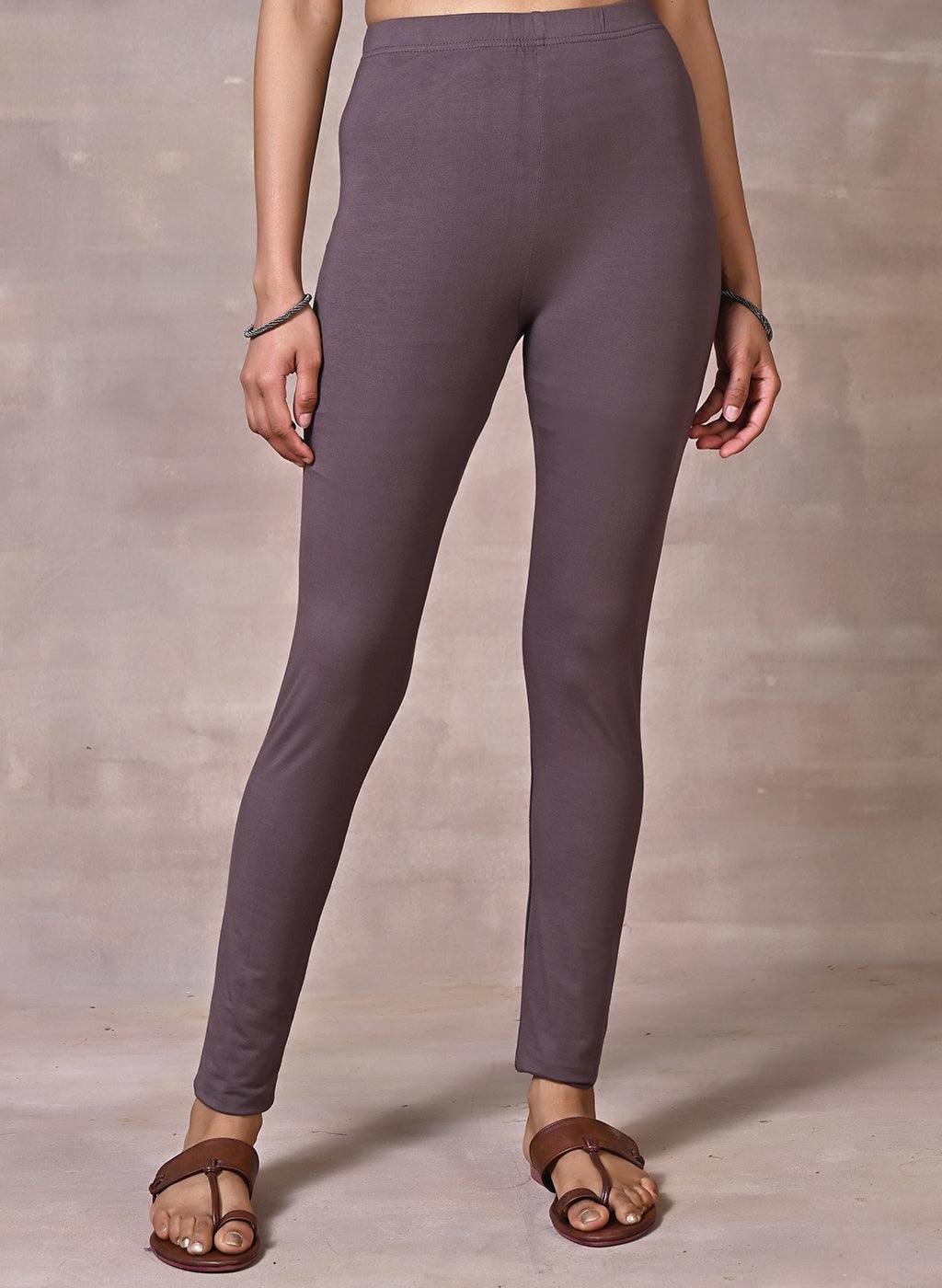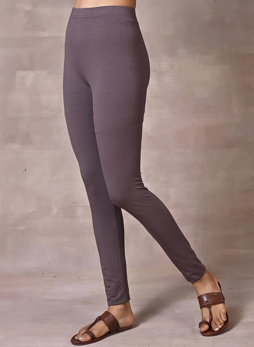 Slate Grey Ankle Length Plain Legging - Lakshita