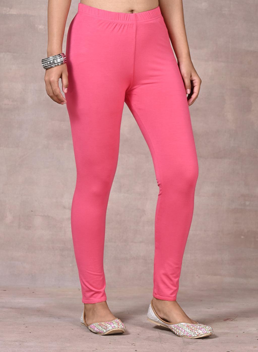 Pink Ankle Length Plain Legging - Lakshita