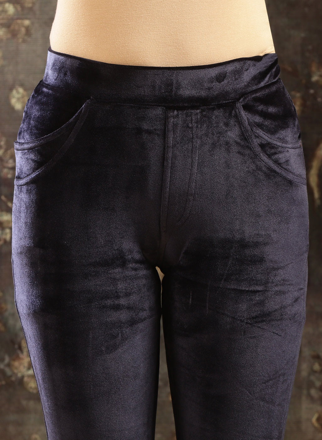 A good pair of velvet leggings is a total must-have for the season. Pair them with a sweatshirt and a pair of shoes to have a sporty look for the day.