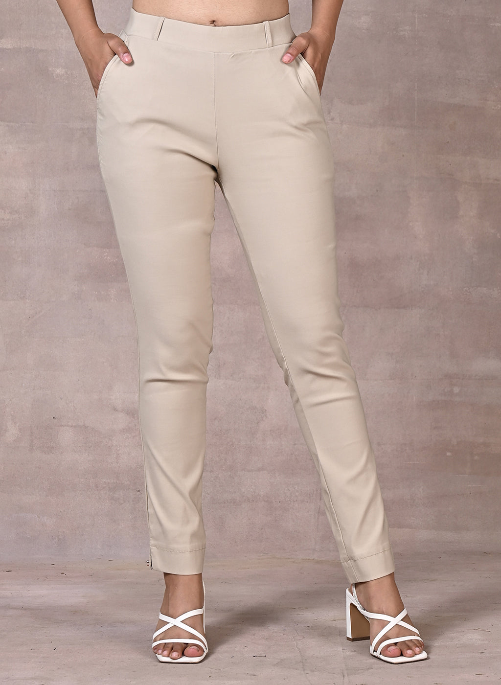 Skin-Fit Beige Jeggings