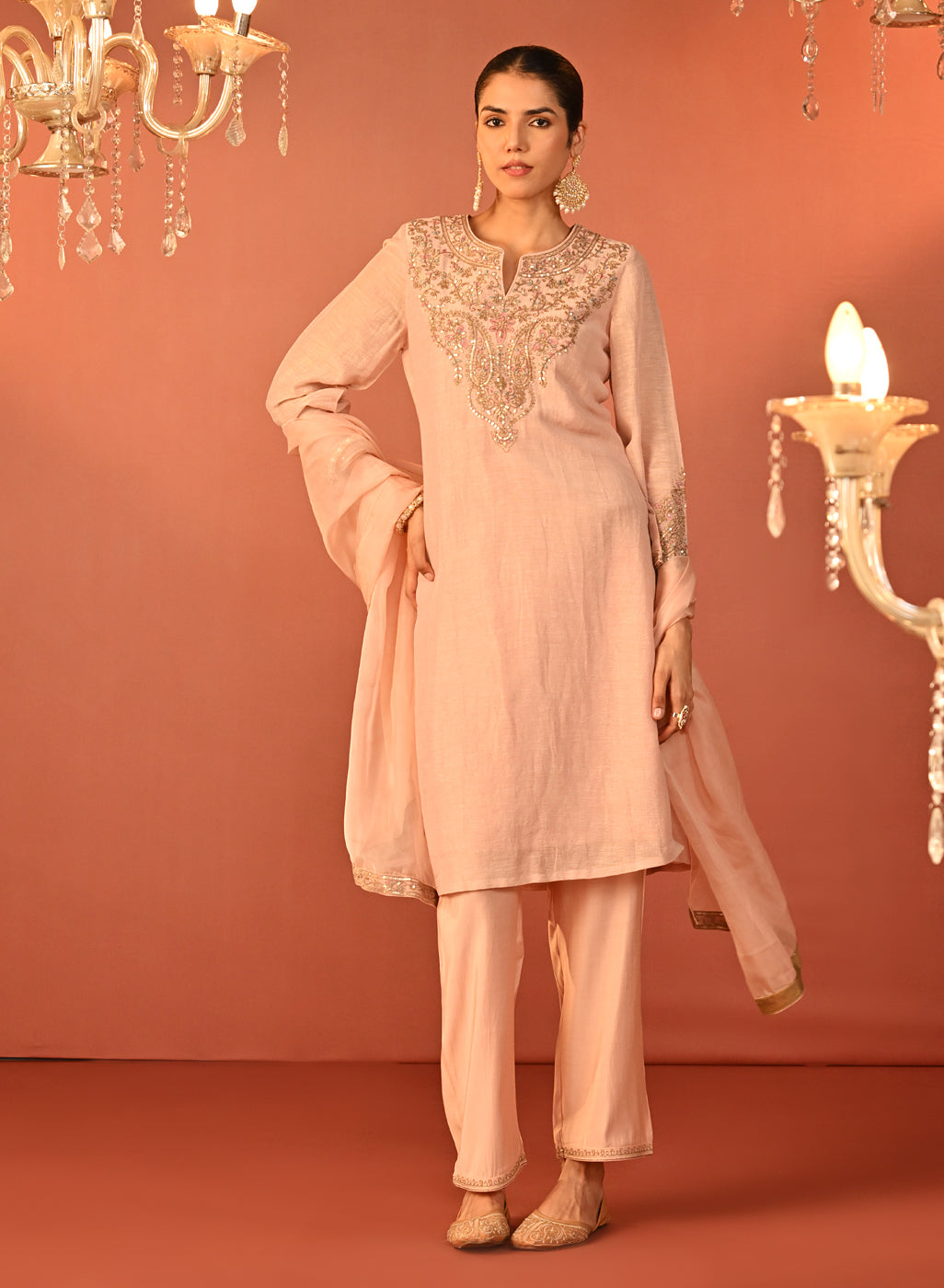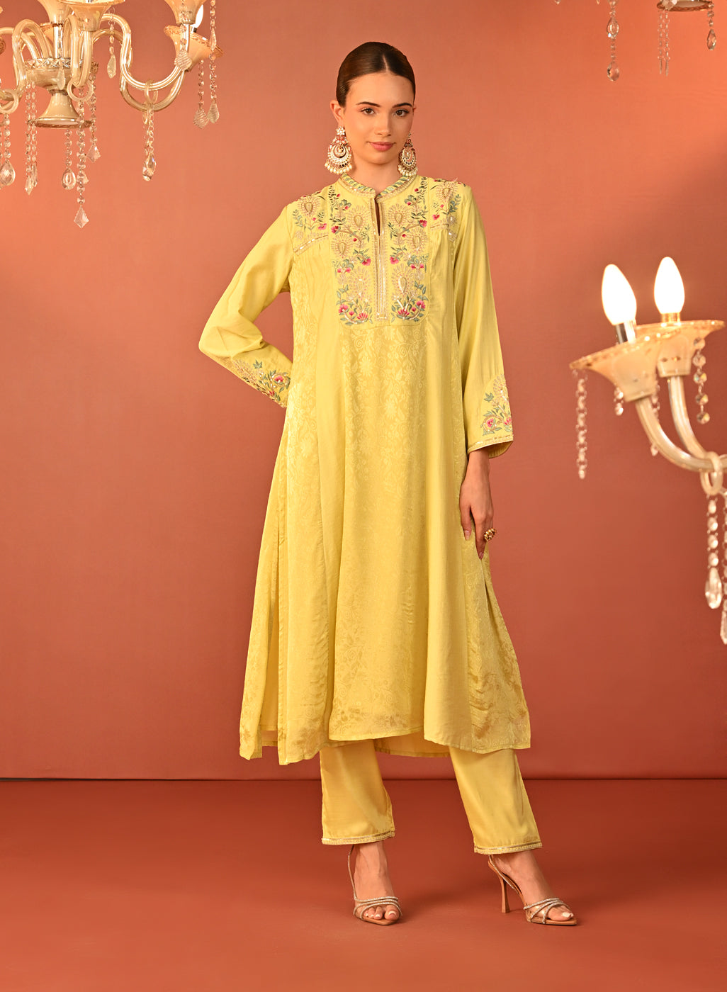 Ivory Embroidered Viscose Satin Co-Ord Set