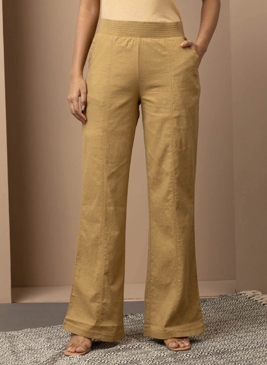Akiya Golden Cotton Linen Relaxed Fit Pants for Women