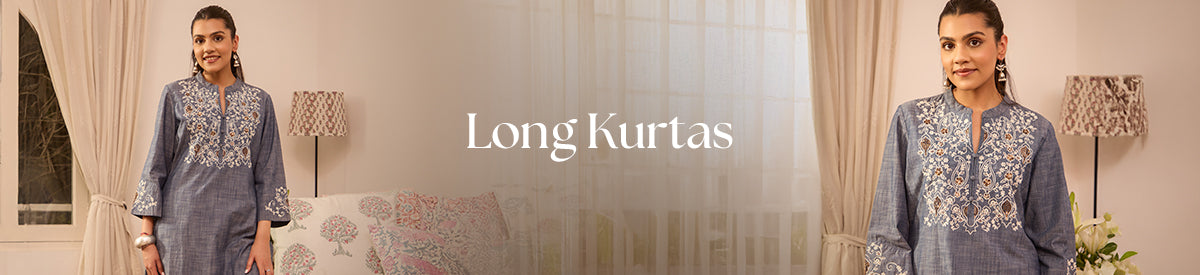 Women's kurta with delicate embroidery, three-quarter sleeves, and a timeless silhouette for an elegant look.