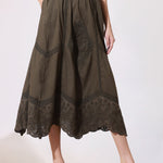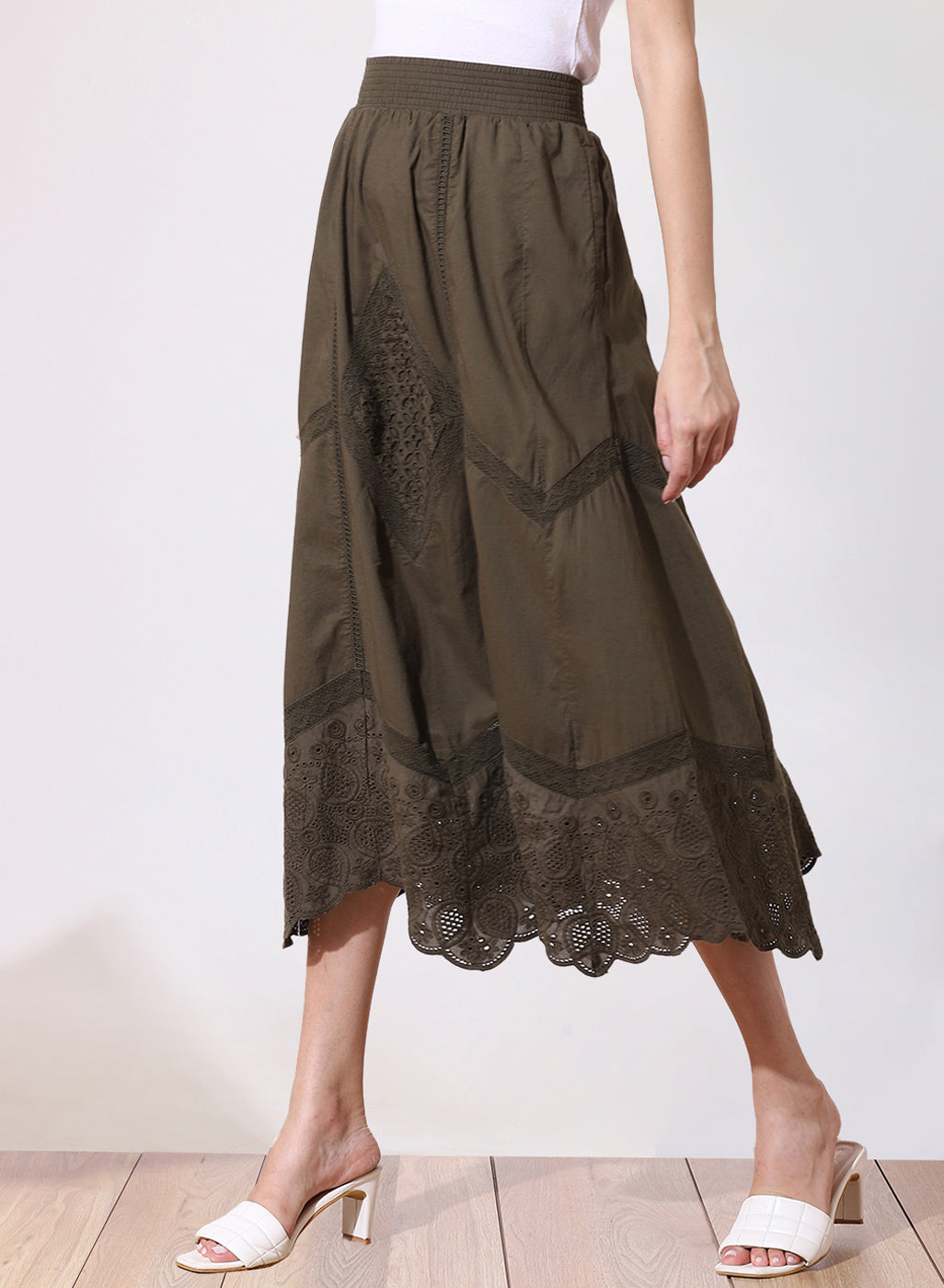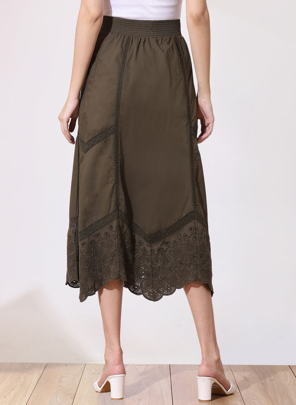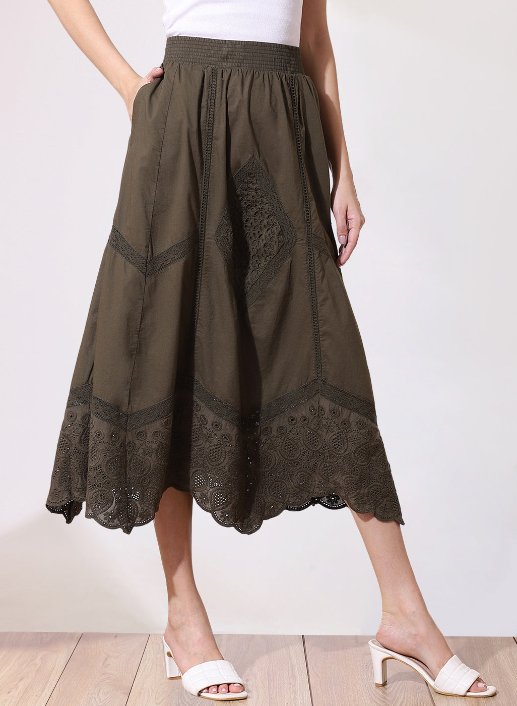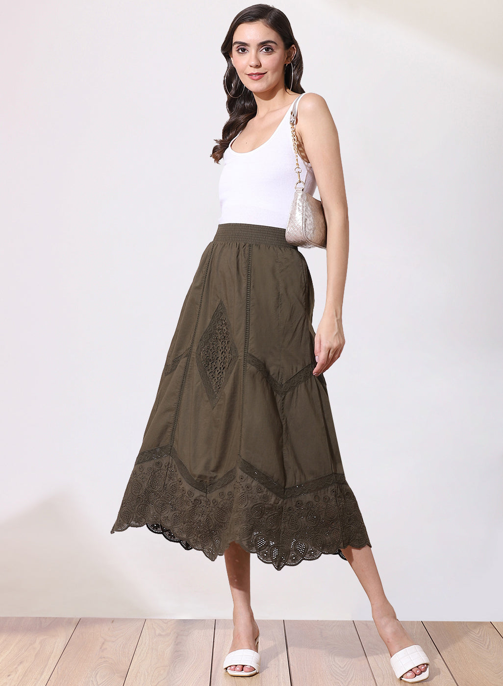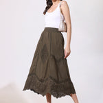 Look stylish and sassy, come what may with this olive skirt from the house of Lakshita. Our skirts are crafted from pure cotton fabric that lends impeccable comfort while the color palette offers a range of choices. Accented with elasticated waistbands our plain skirts can make a great combo with crop tops, ethnic kurtas, and other upper wear.