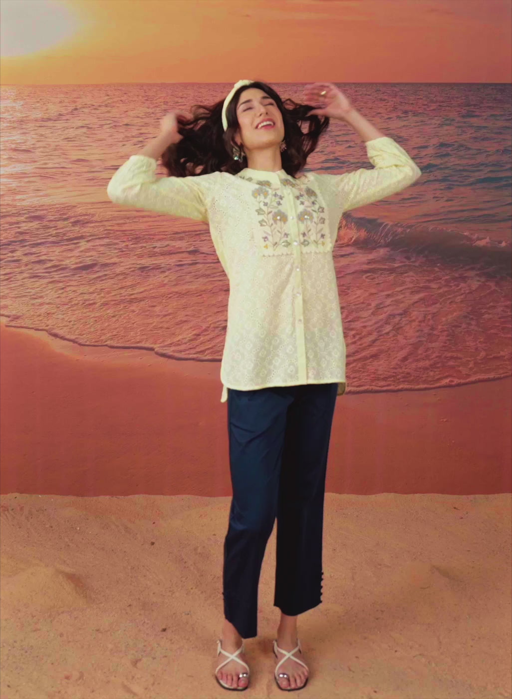 Yellow Embroidered Schiffli Cotton Top