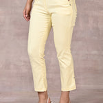Stretch pants in cotton spandex are cut at ankles. The denim 5 pocket style is best worn with short blouses and tunics. Ideal for work, these pants are a must have this summer.