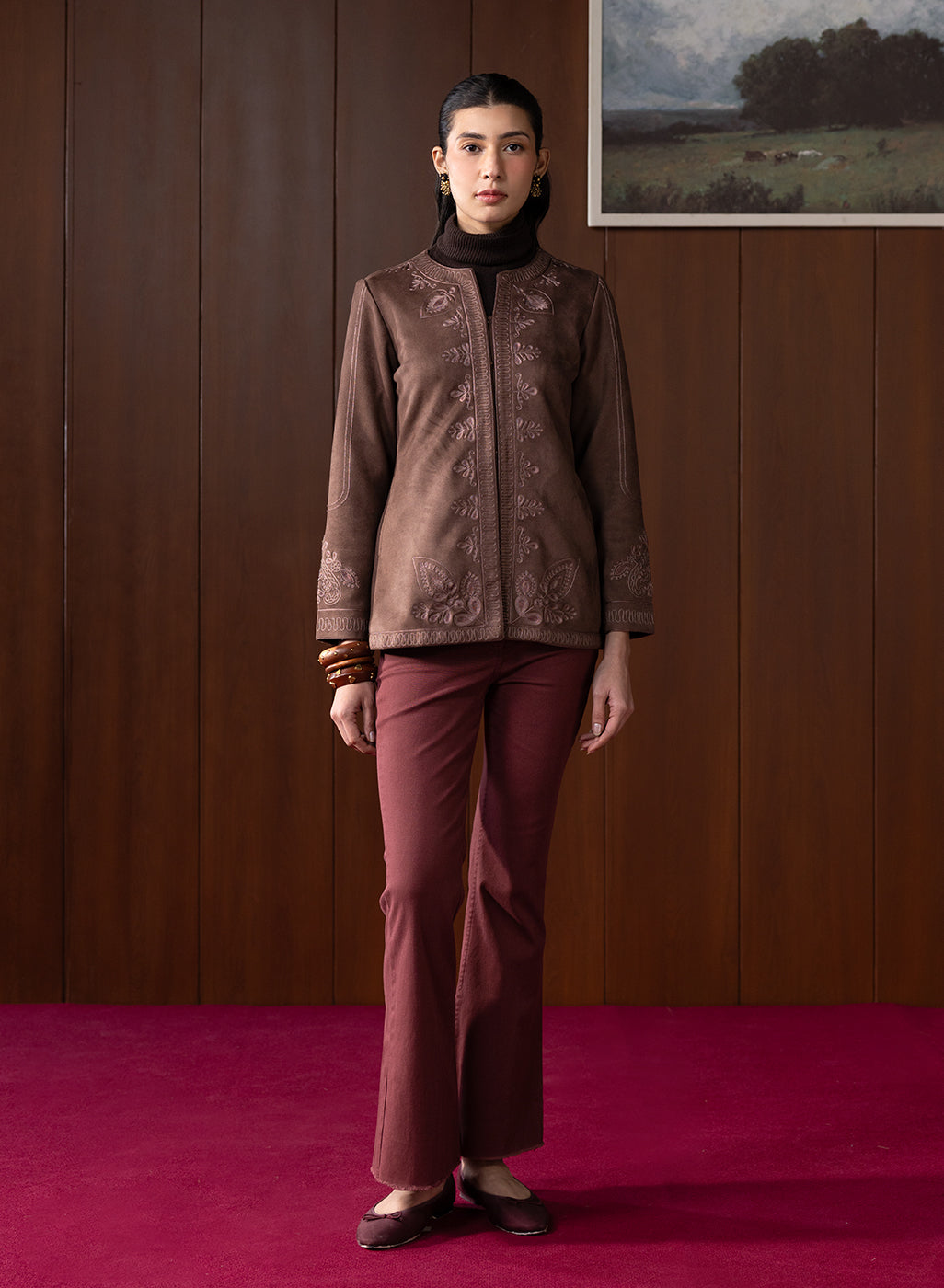 Eira Brown Embroidered Suede Jacket