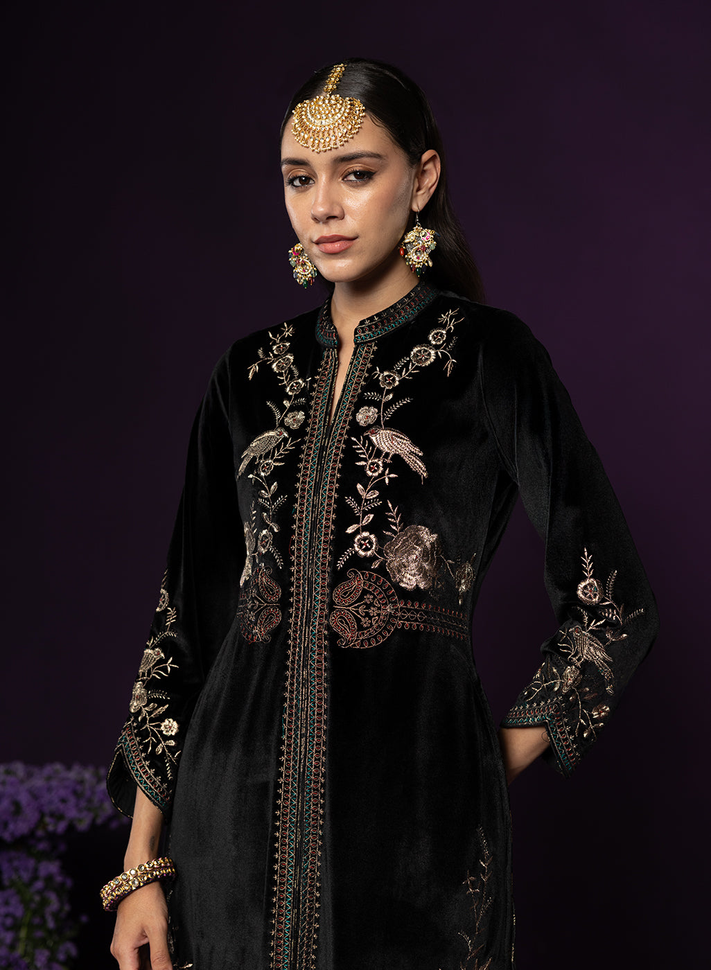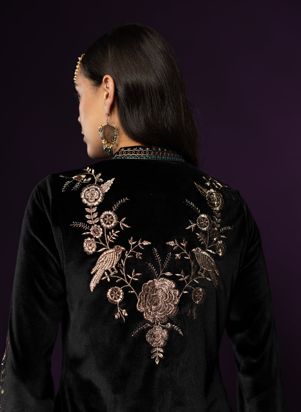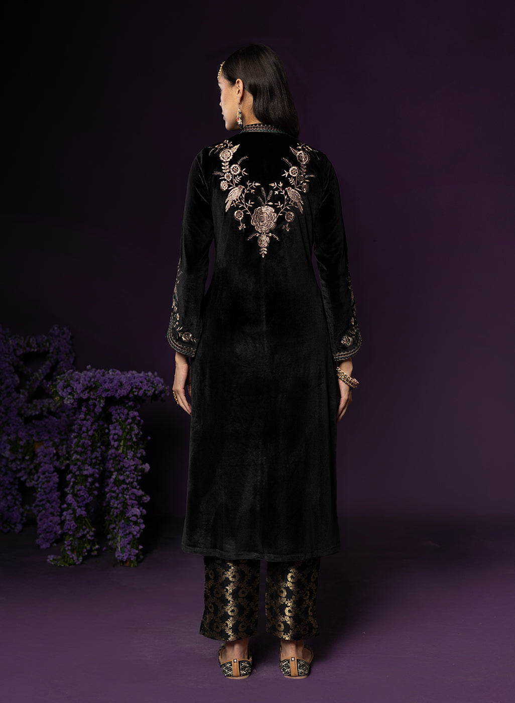 Avira Black Zari Embroidered Velvet Co-ord Set