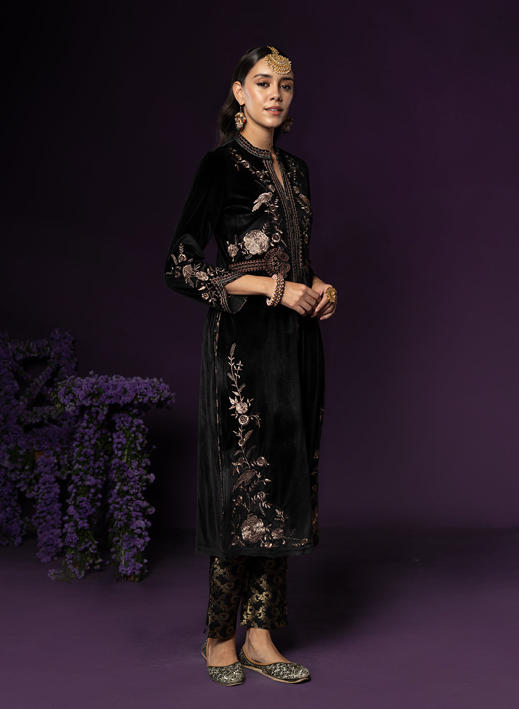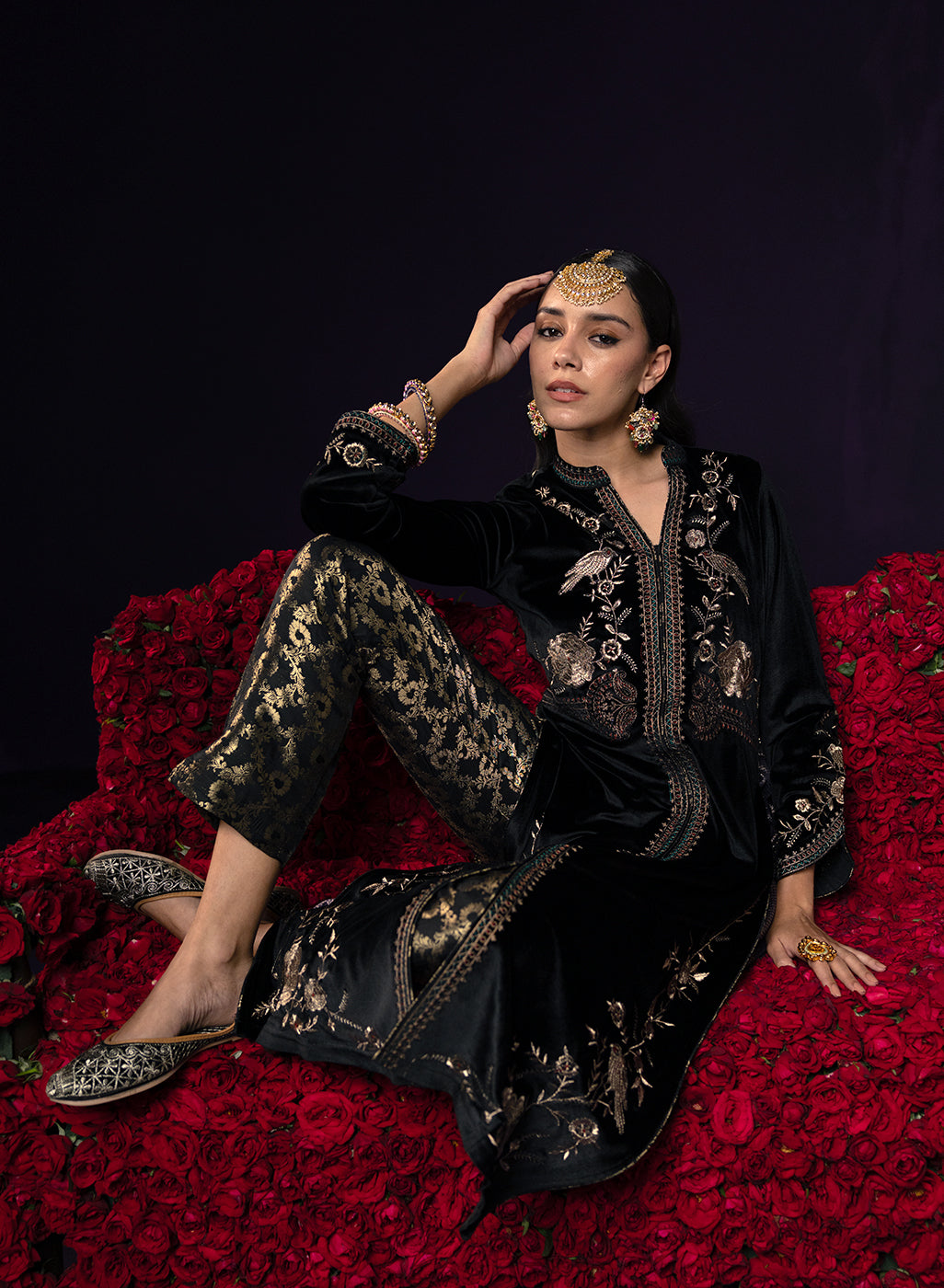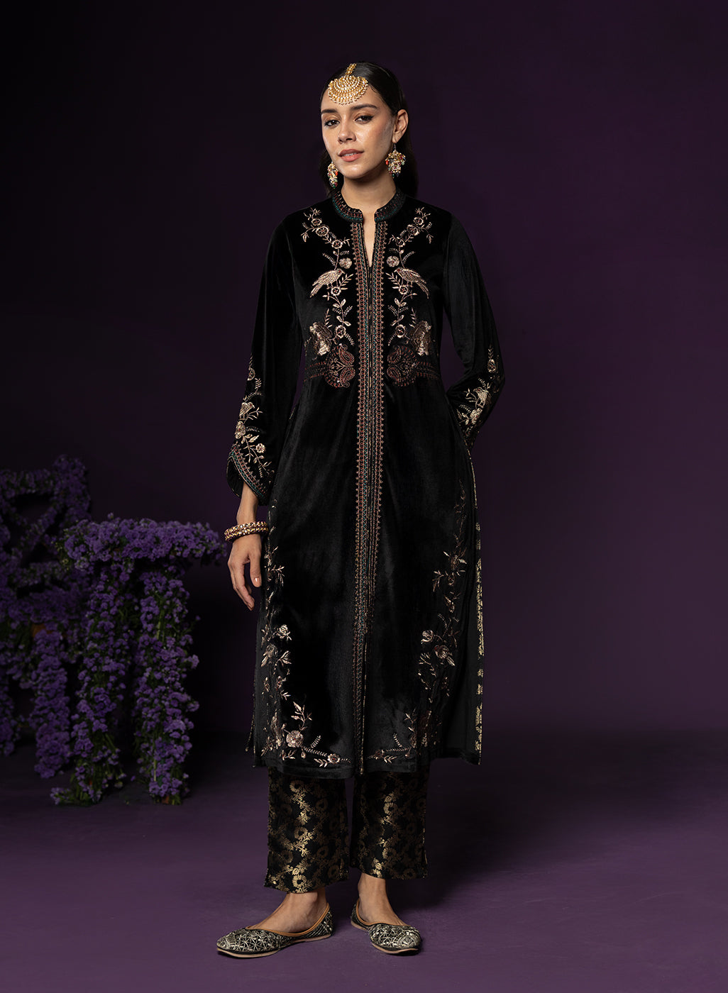 Avira Black Zari Embroidered Velvet Co-ord Set