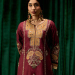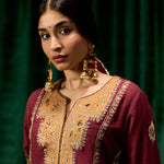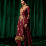 Dua Maroon Zari Embroidered Suit Set with Dupatta