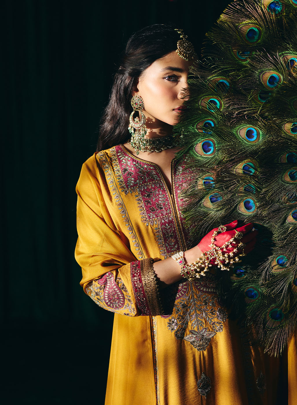 Dua Mustard Zari Embroidered Suit Set with Dupatta