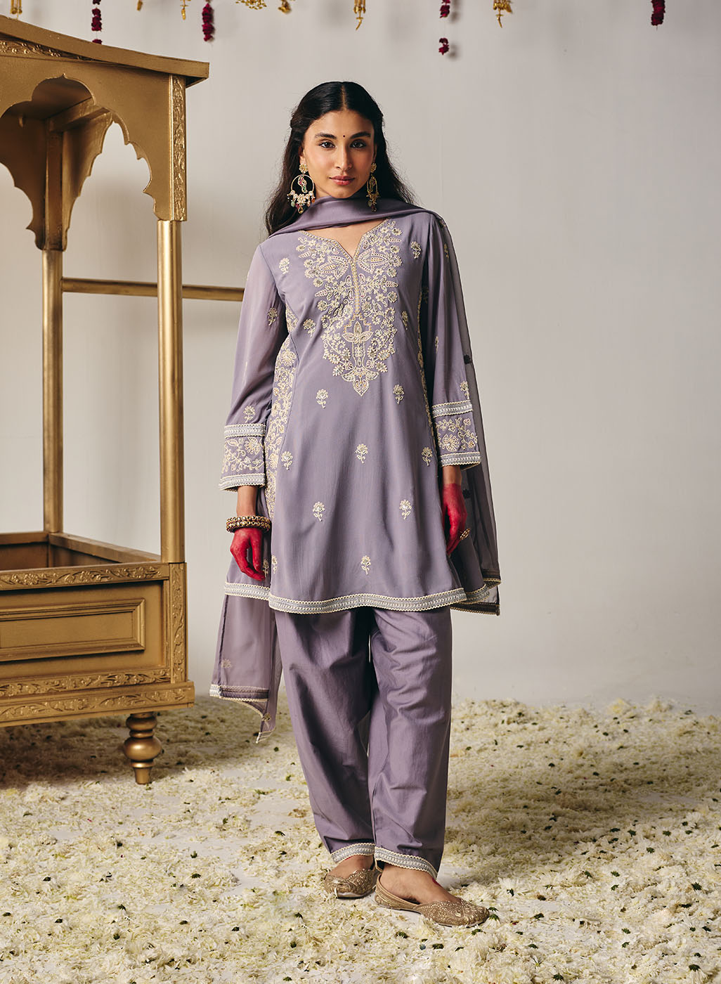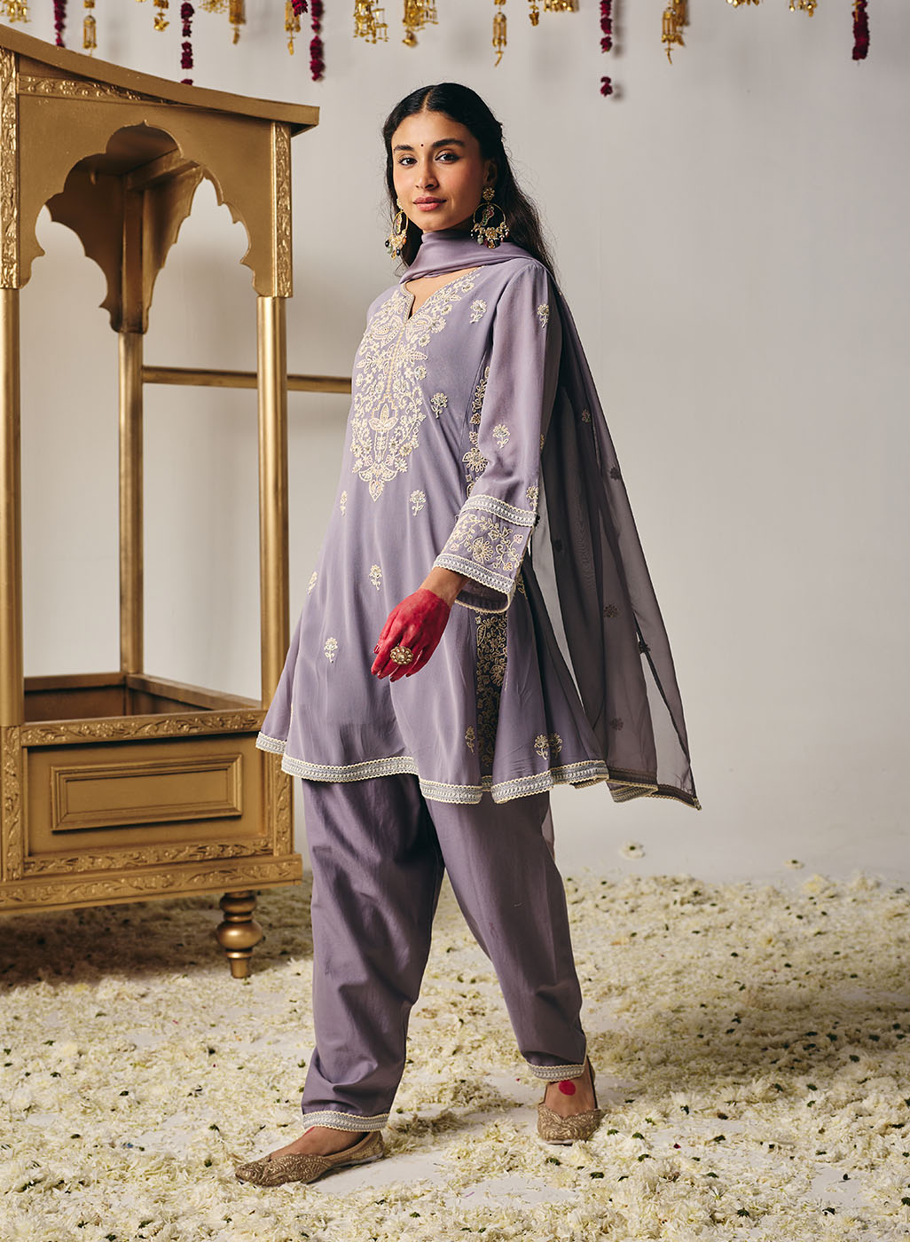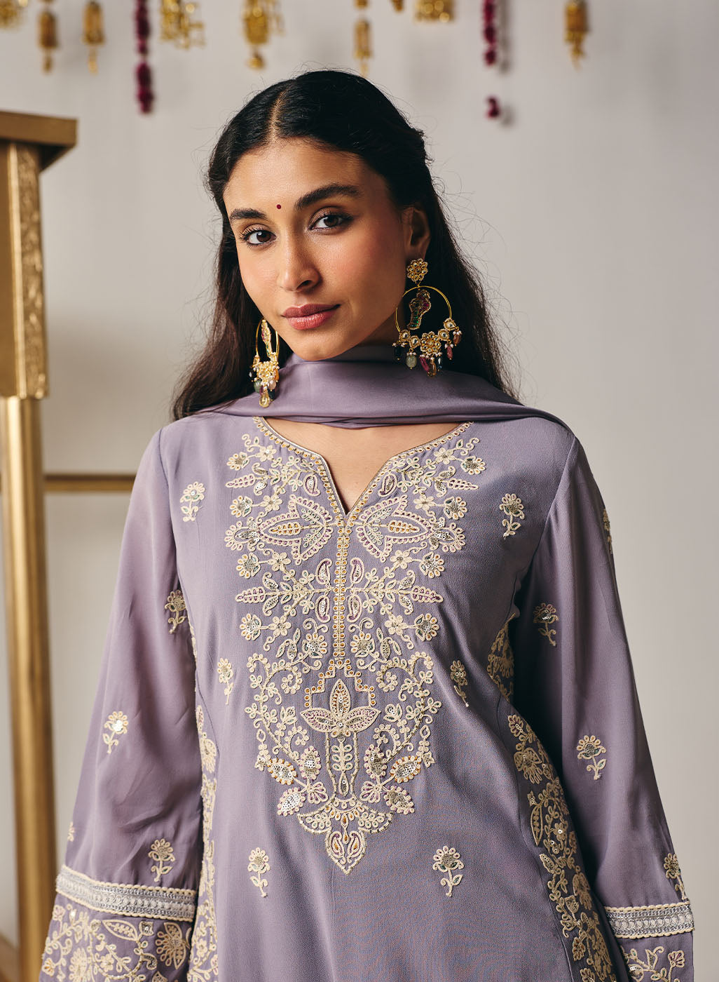 Fayra Lavender Georgette Embroidered Suit Set with Dupatta