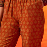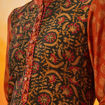 Set against a black base, the traditional motifs and warm orange accents create a striking yet wearable look. Clean lines and an easy silhouette make this kurta set a versatile addition to your everyday wardrobe.