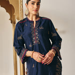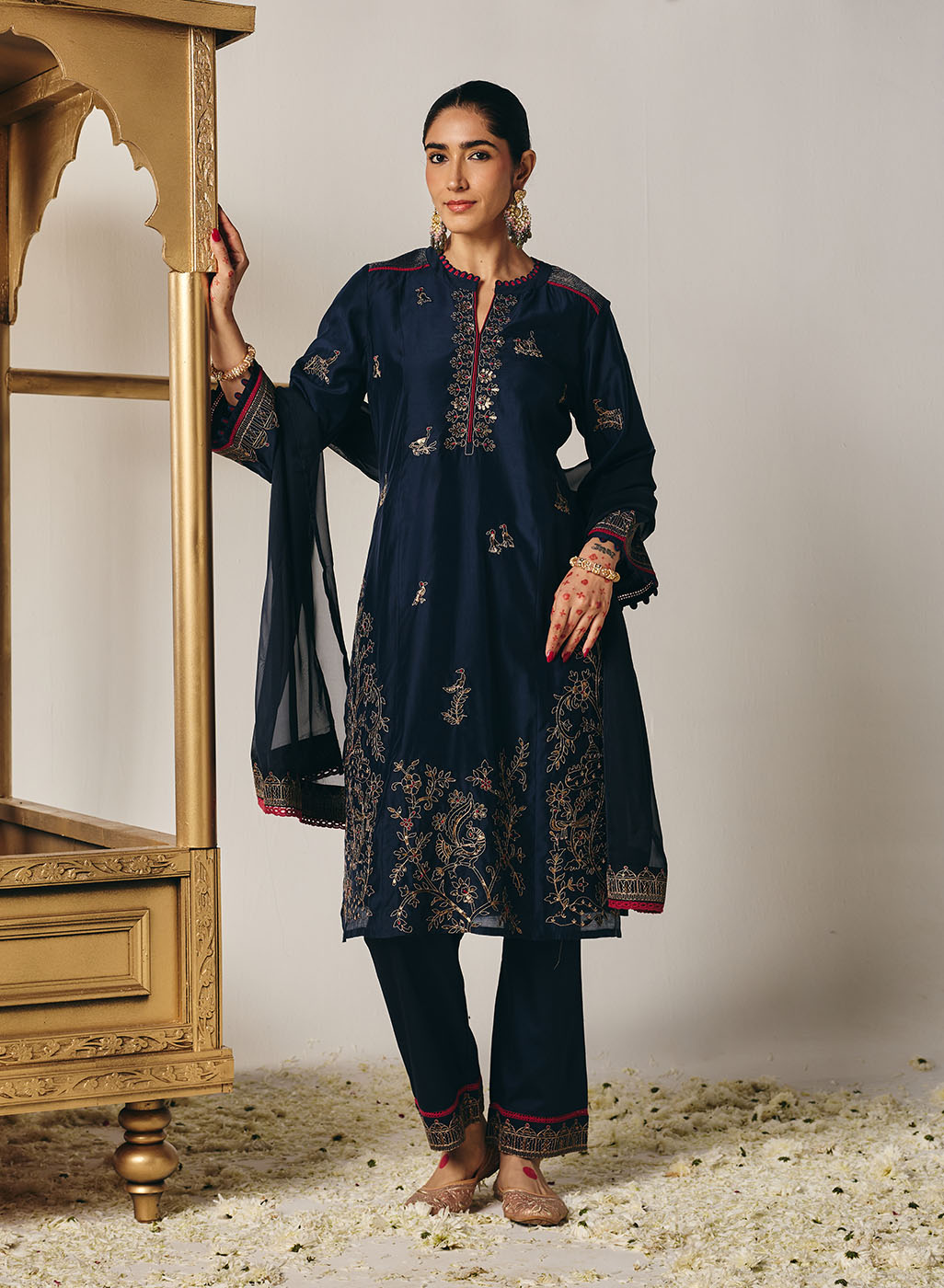 Reya Navy Chanderi Embroidered Suit Set with Dupatta