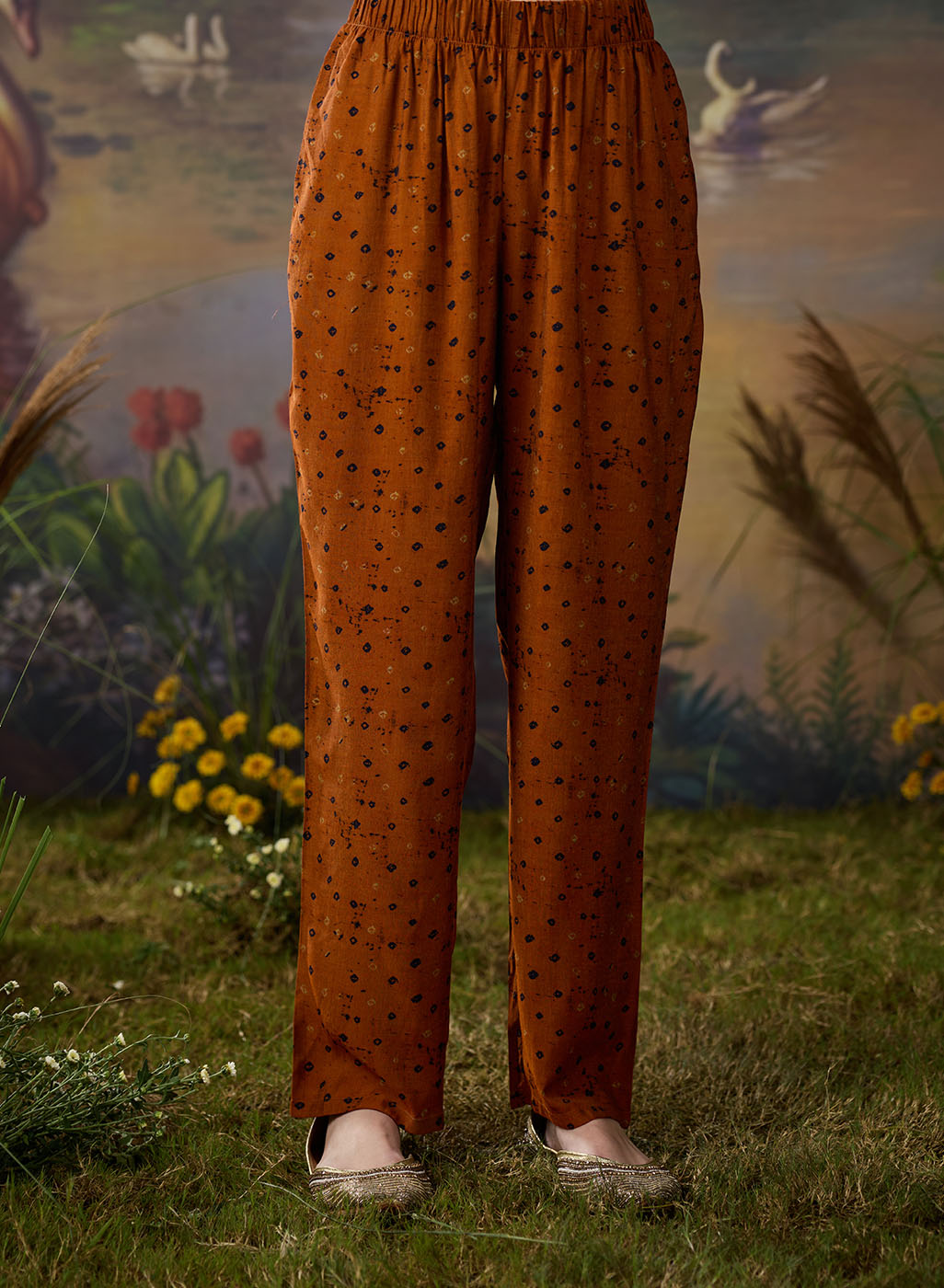 Rukhsar Mustard Printed Viscose Suit Set with Dupatta