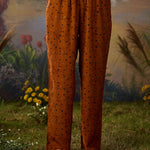 • Printed straight pants with mid-rise elastic waistband and pockets