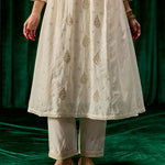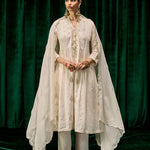 Svara Ivory Self Embroidered A-line Suit Set with Dupatta