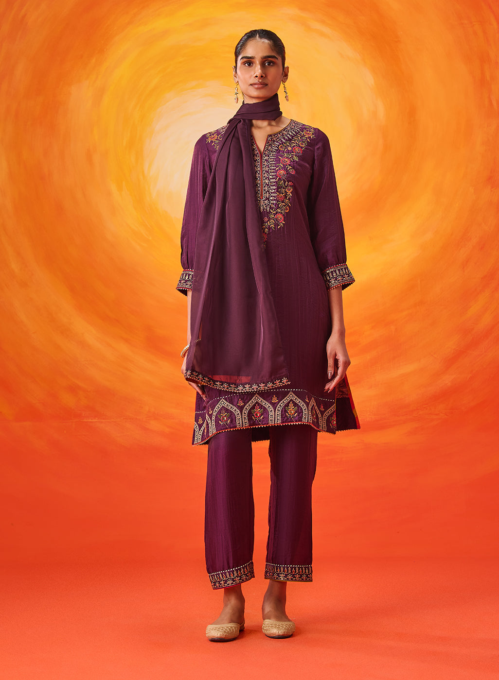 Purple Embroidered Nylon Suit Set