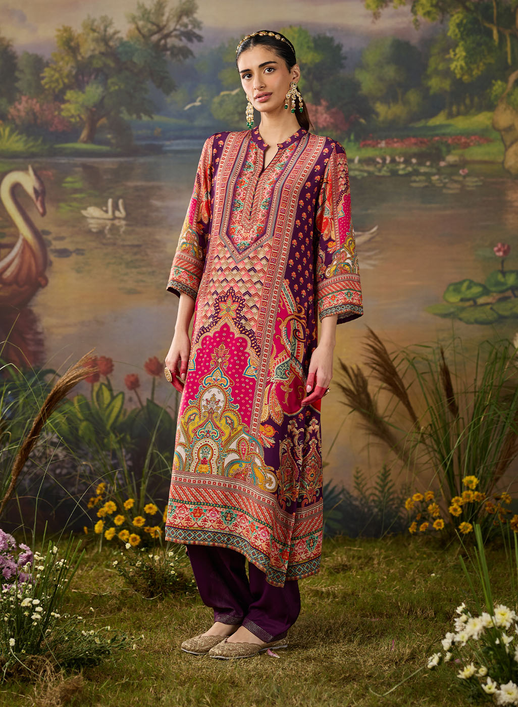 Chitra Deep Purple Heritage Printed Shantoon Co-ord Set with Salwar