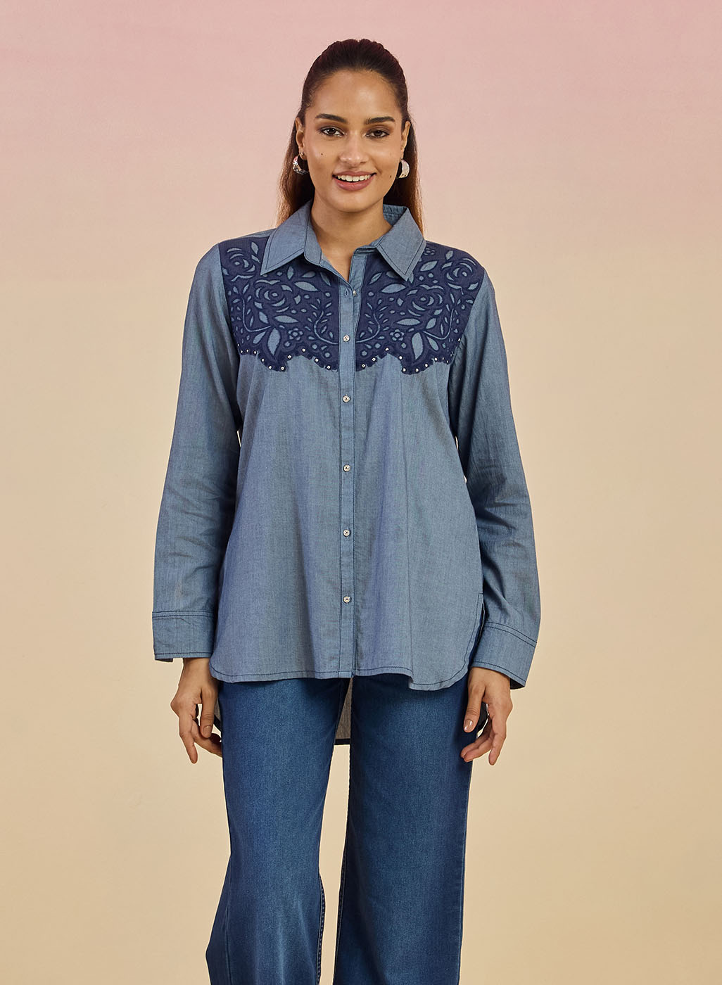 Amaltas Navy Blue Printed Viscose Embellished Straight Long Kurta Set