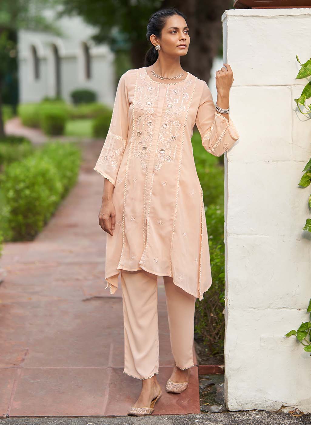 Brown Princess Cut Solid Kurta with Gathered Sleeves