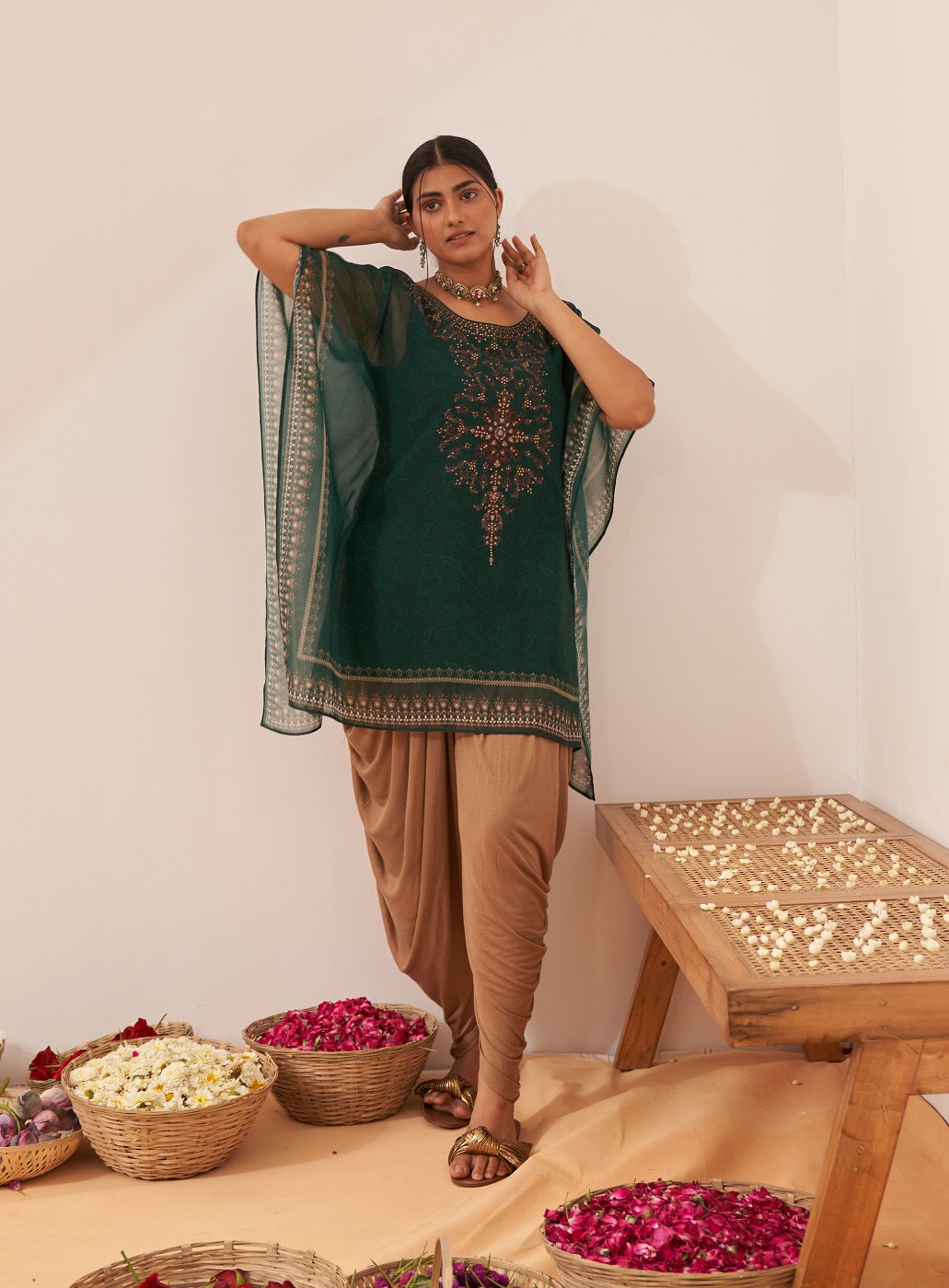 Green Phool Collection Kaftan With Swarovski Work