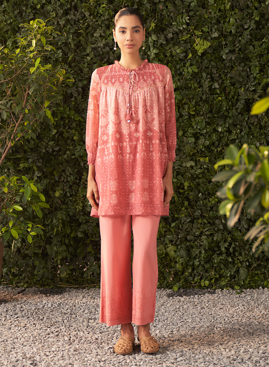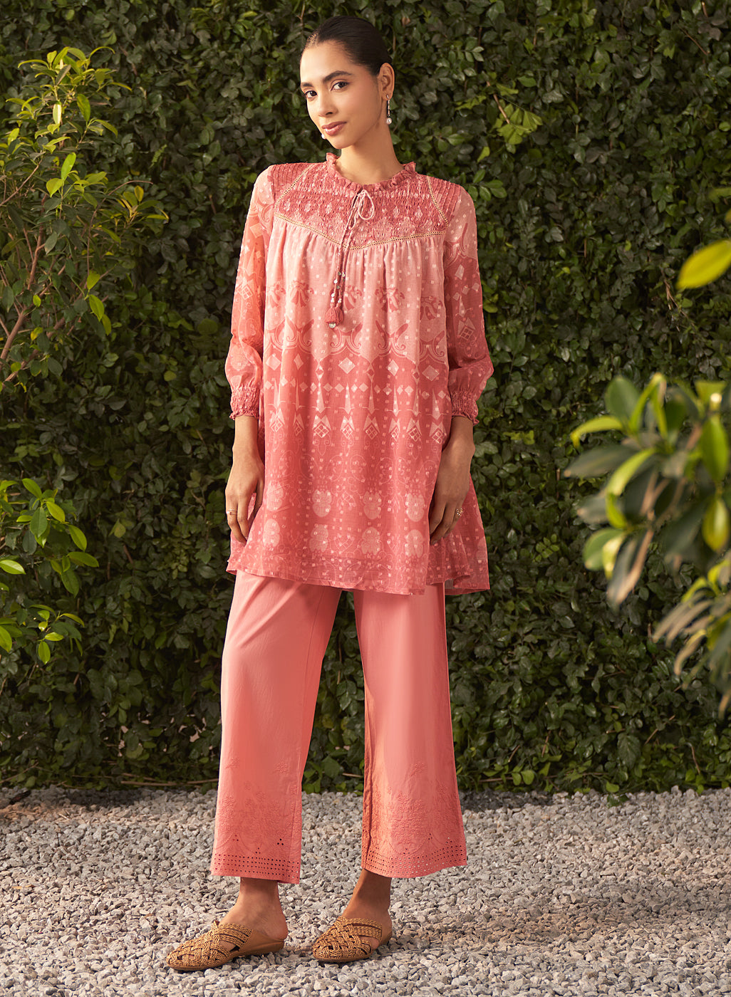 Pink Printed Viscose Chiffon Jacquard Tunic
