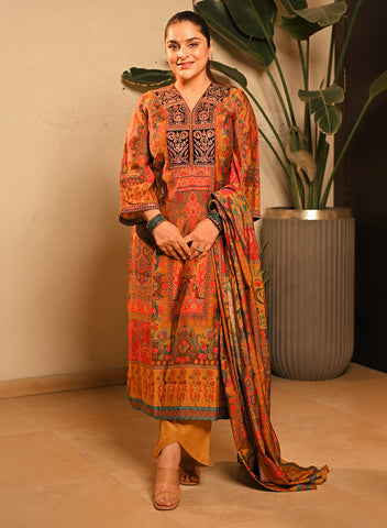Aarzoo Grey Printed Chanderi Suit Set with Dupatta