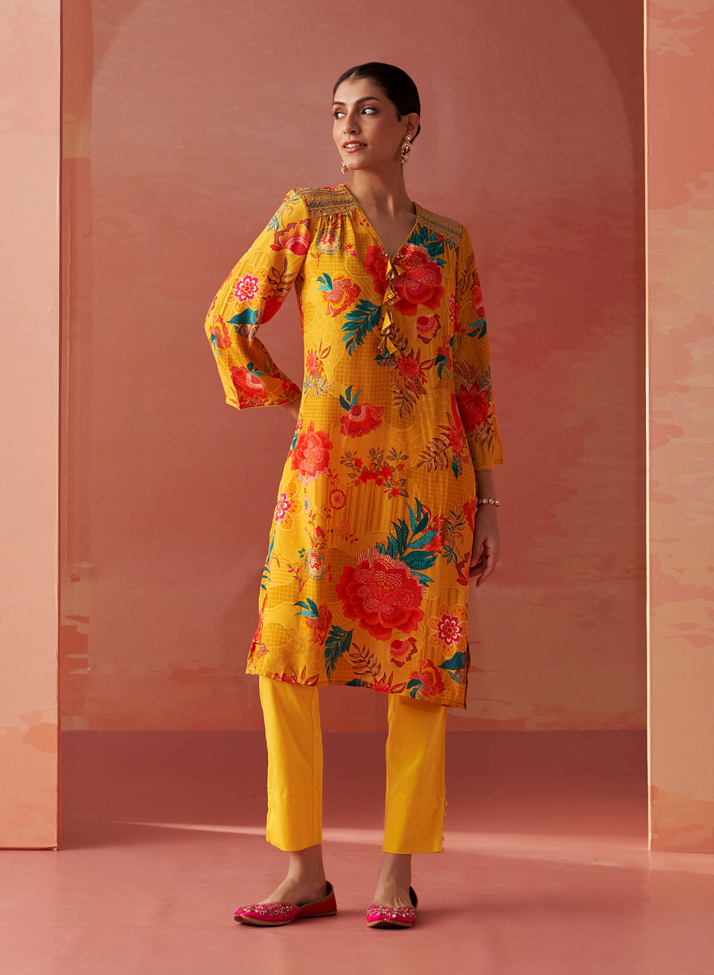 Green Printed Woollen Kurta Set for Women with Sequin Work