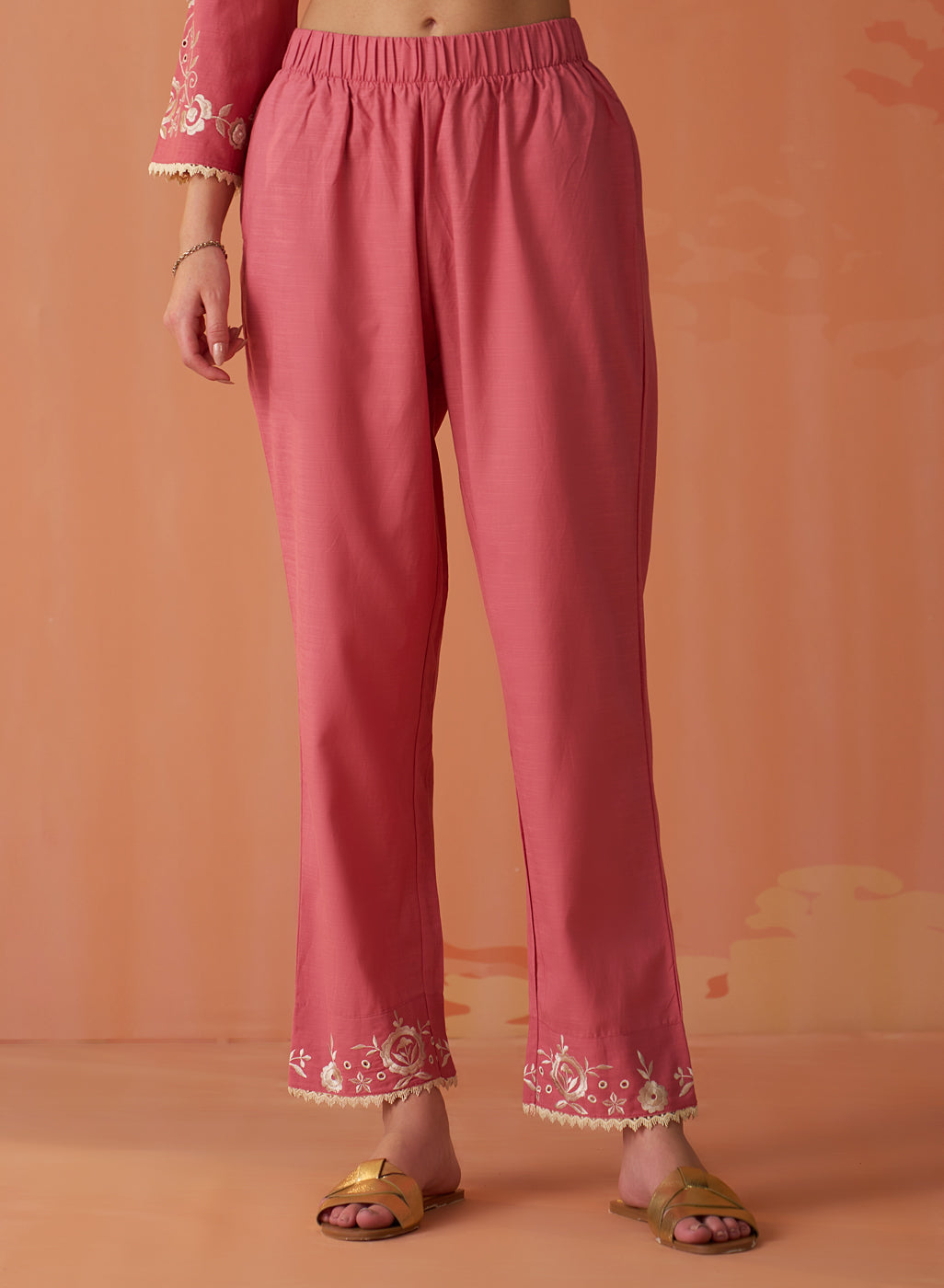 Aira Peach Embroidered Cotton Linen Co-ord Set for Women