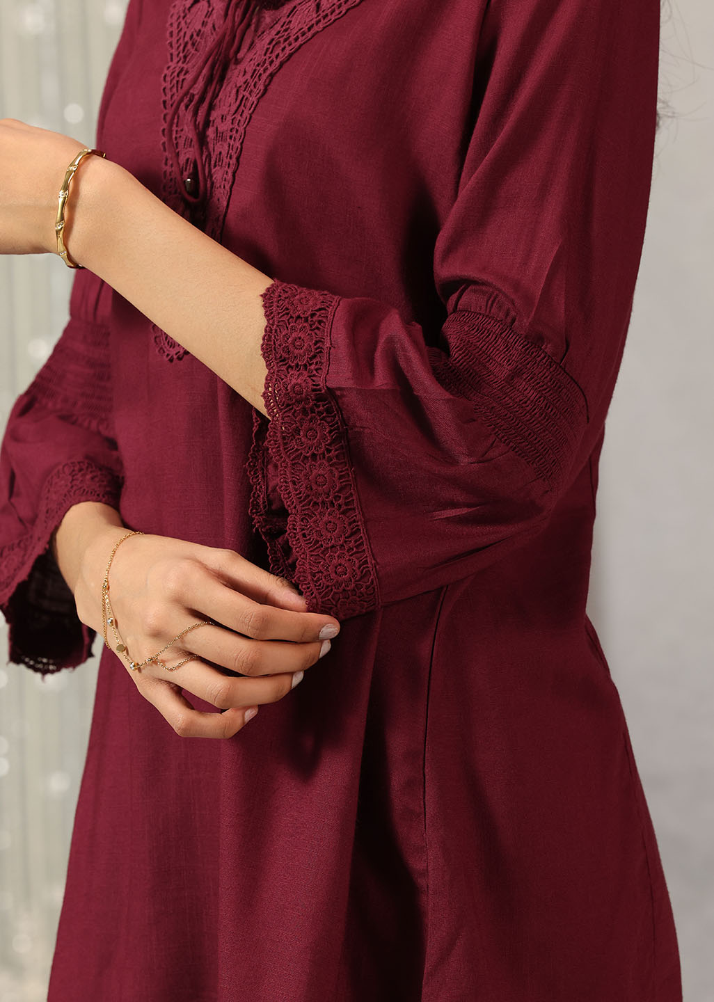 Ruby Wine Solid Tunic with Keyhole Neck and Bell Sleeves