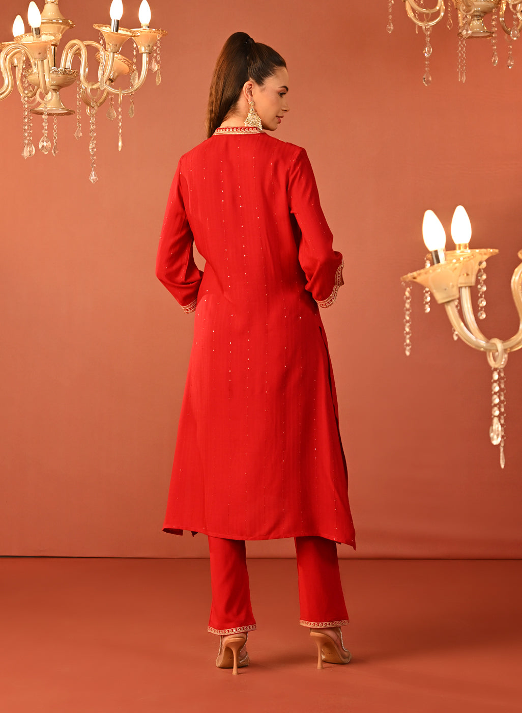 Raima Red Embroidered Rayon Kurta Set