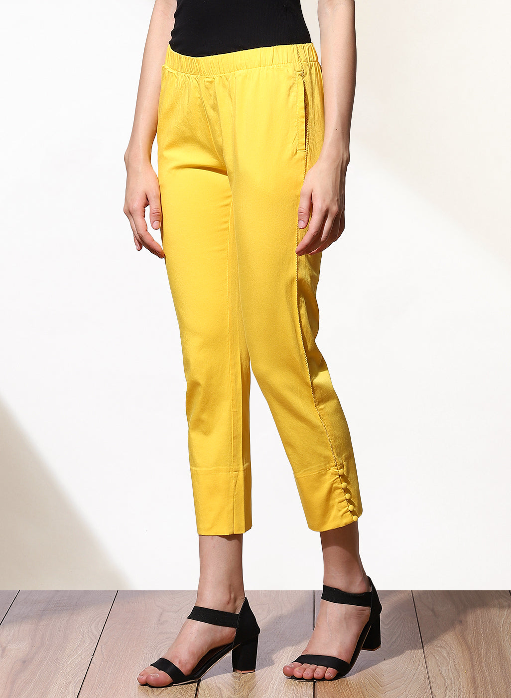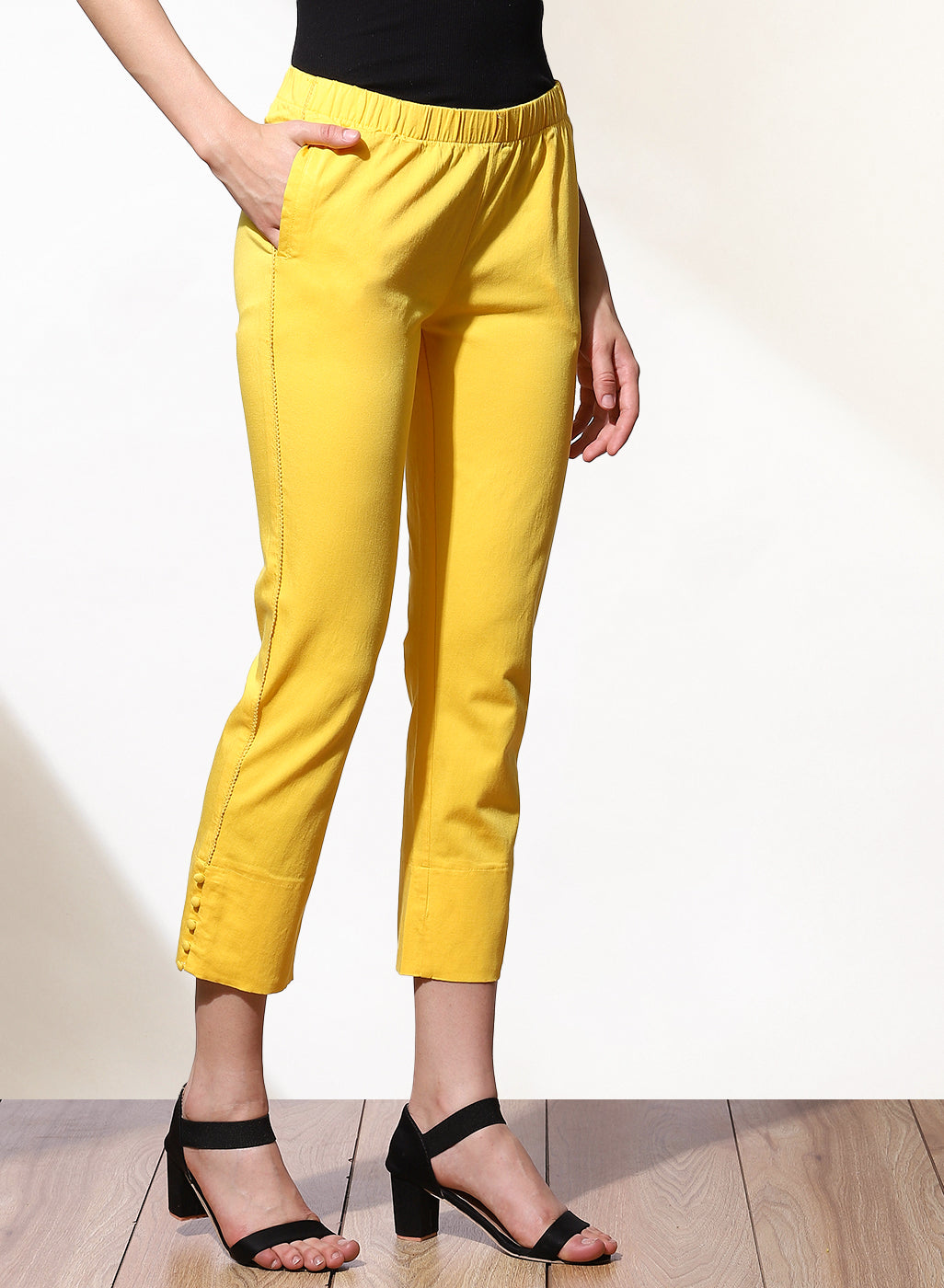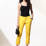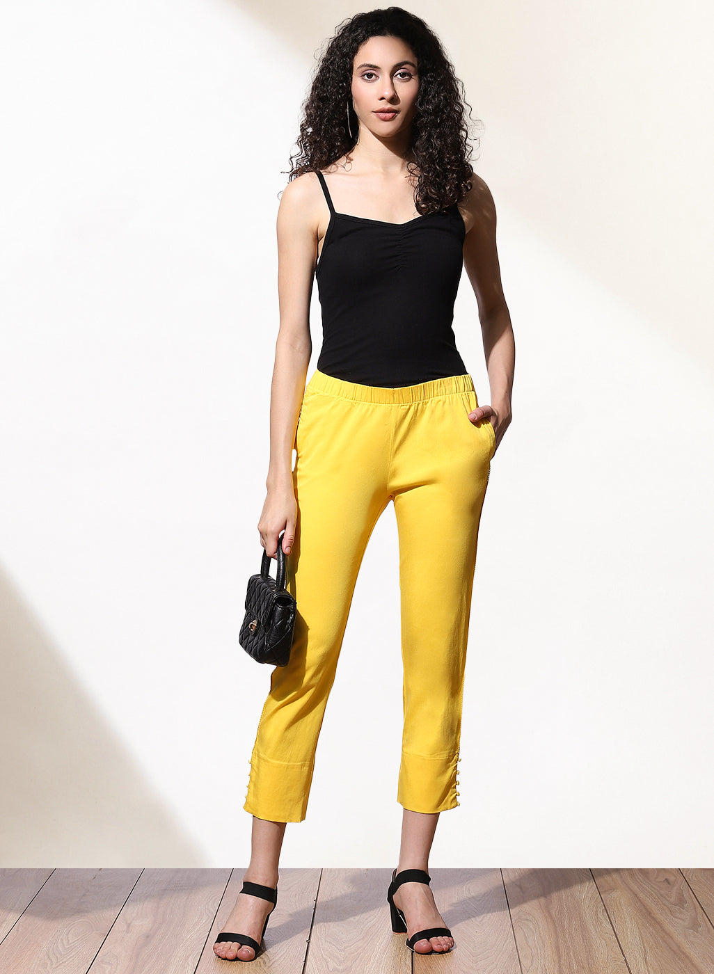Our Mia Yellow Relaxed Fit Pants for Women are designed to offer a perfect mix of comfort and sophistication. Made from soft, breathable fabric with a subtle lustre, these pants provide a luxurious feel while ensuring all-day comfort.