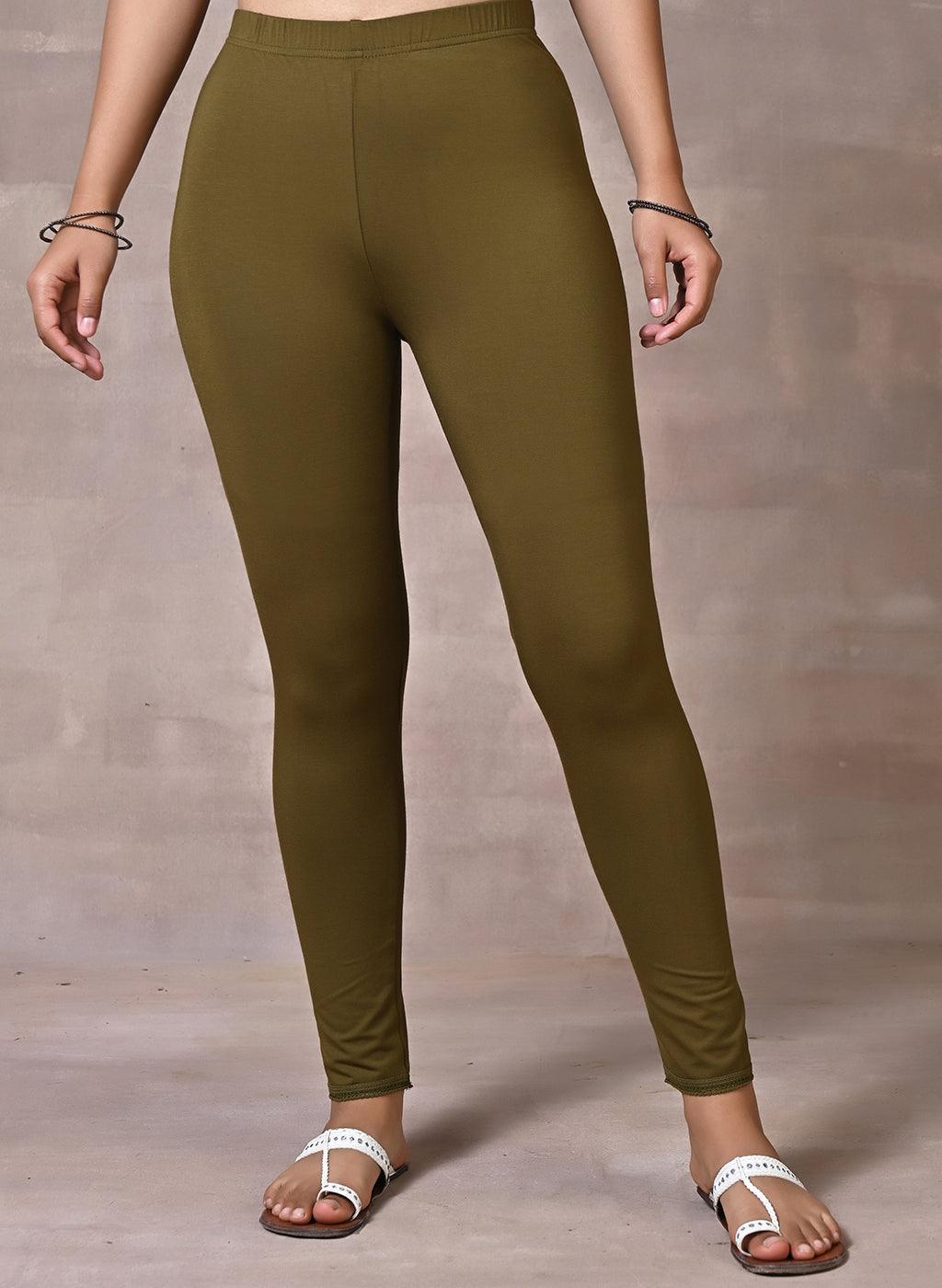 Olive Green Textured Flared Palazzo with Tessel Details