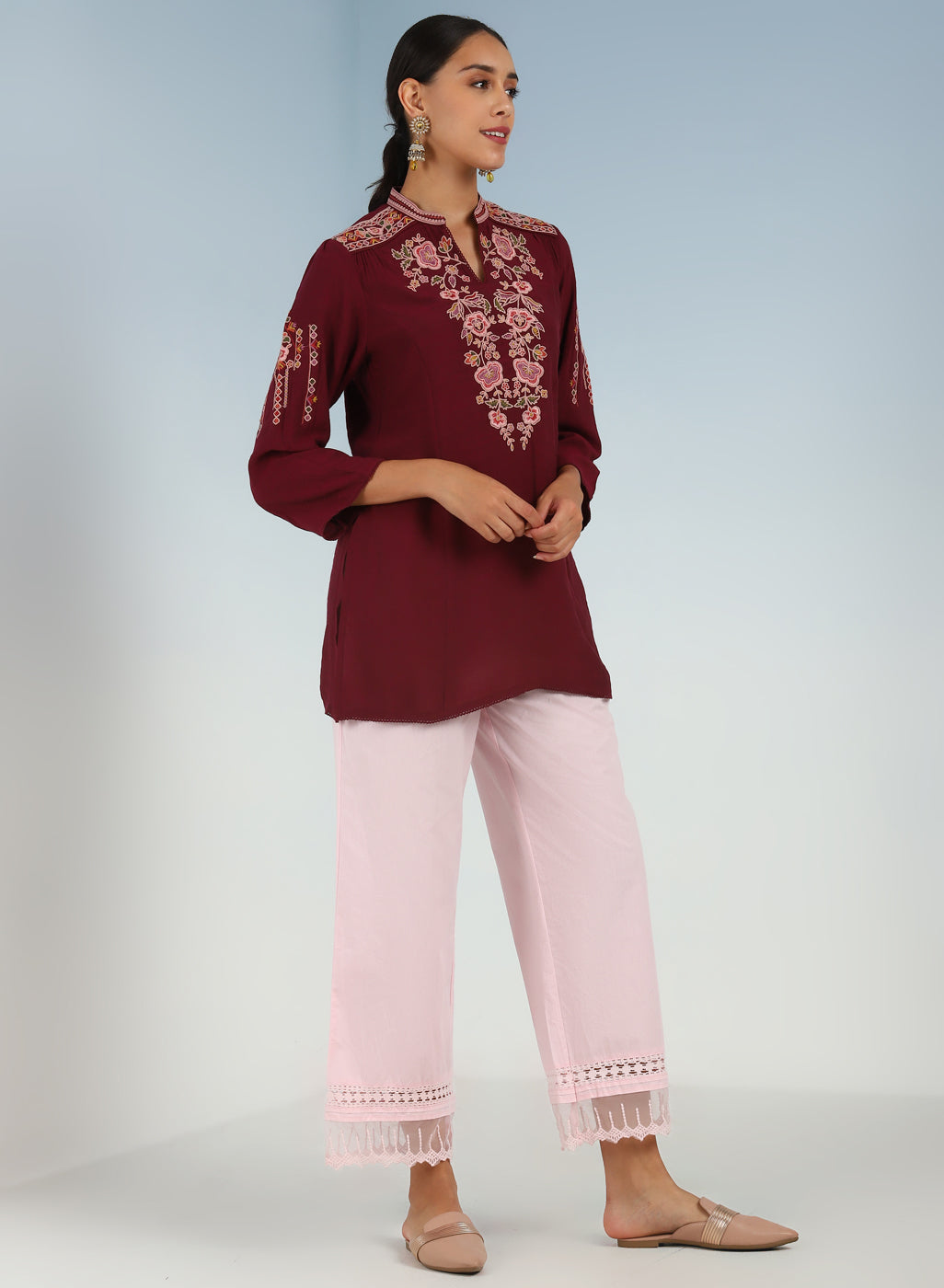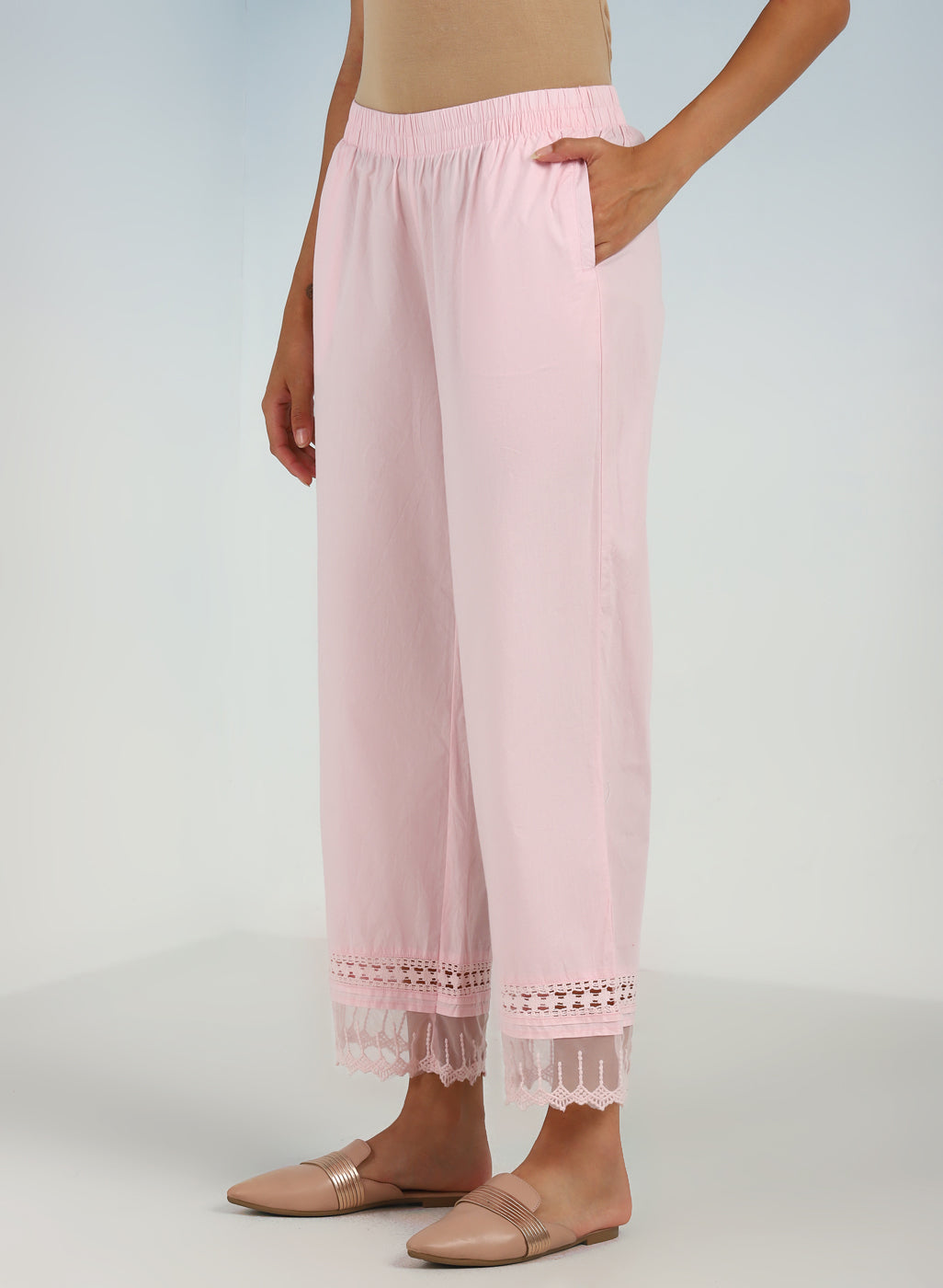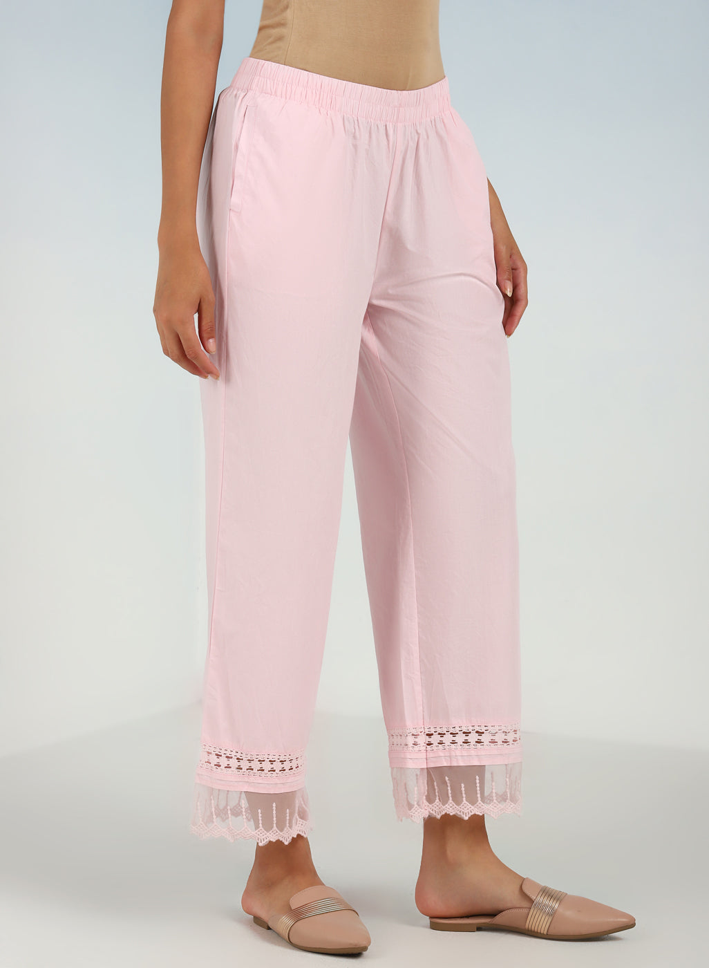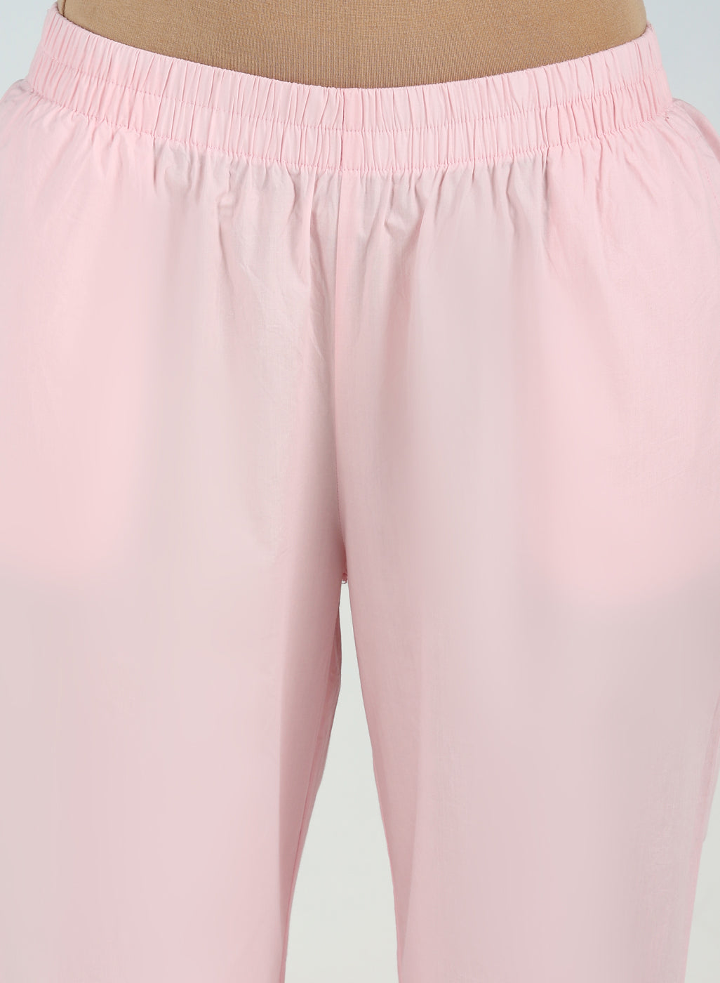 • Immerse yourself in the perfect harmony of sophistication and comfort with these light pink straight-fit palazzos.