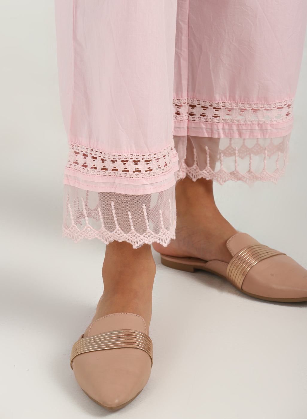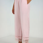 • These palazzos boast a sleek fit, and the delicate net inserts adorning the hem further add to their charm.