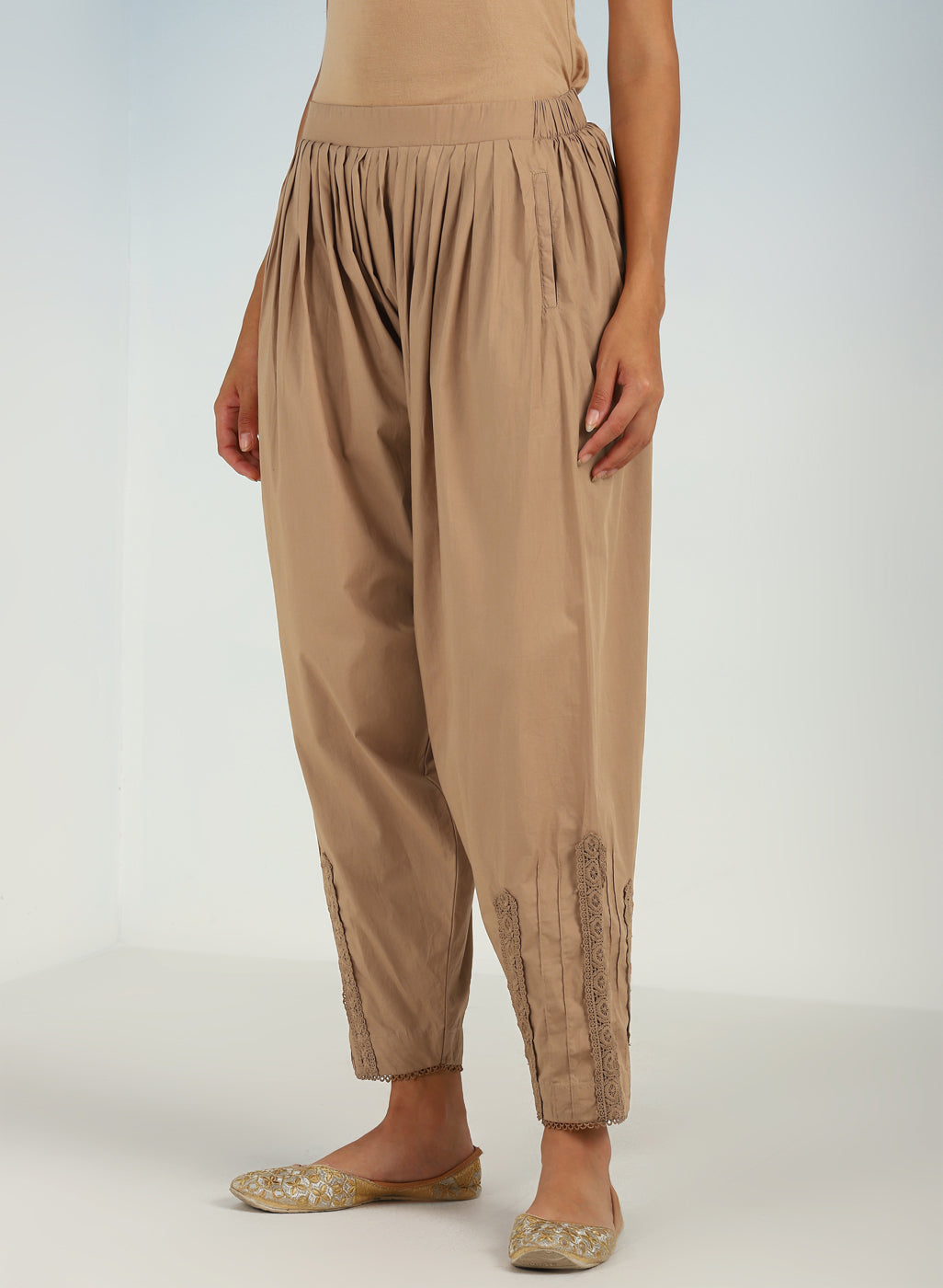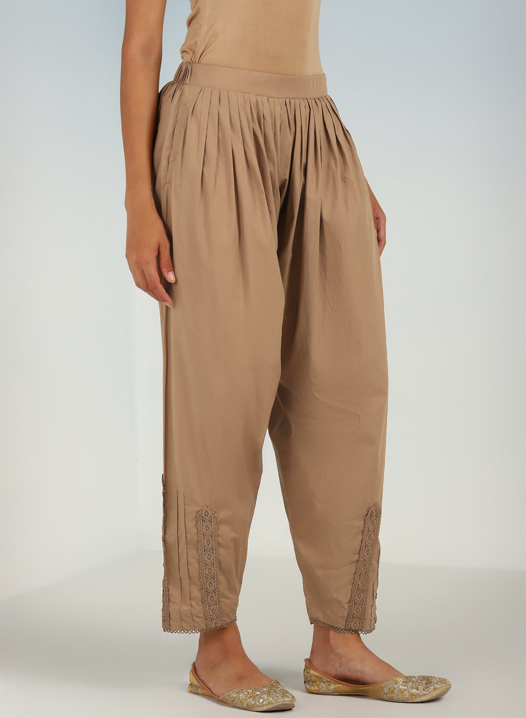 Solid Lavender Pleated Salwar with Hem Lace Work