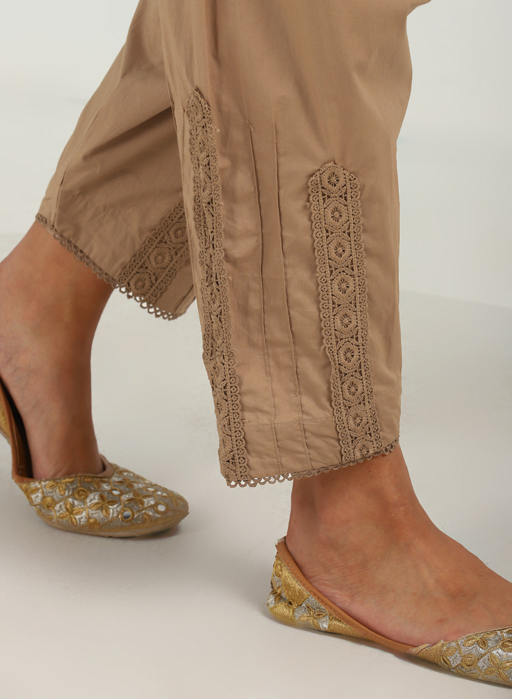 Gold Pleated Salwar with Lace Detailing and Mesh Hem