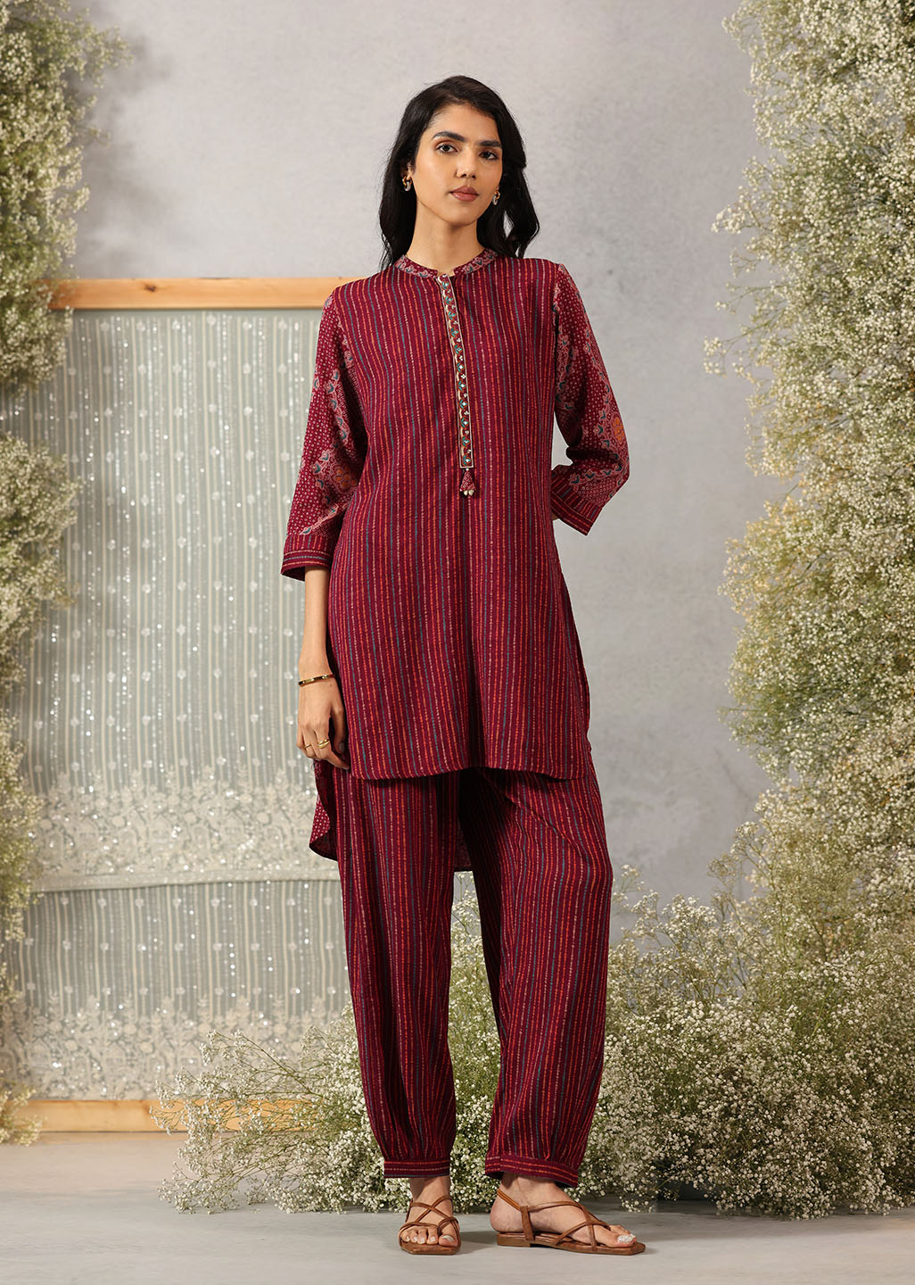 Arshia Chrome Wine Embroidered Rayon Co-ord Set