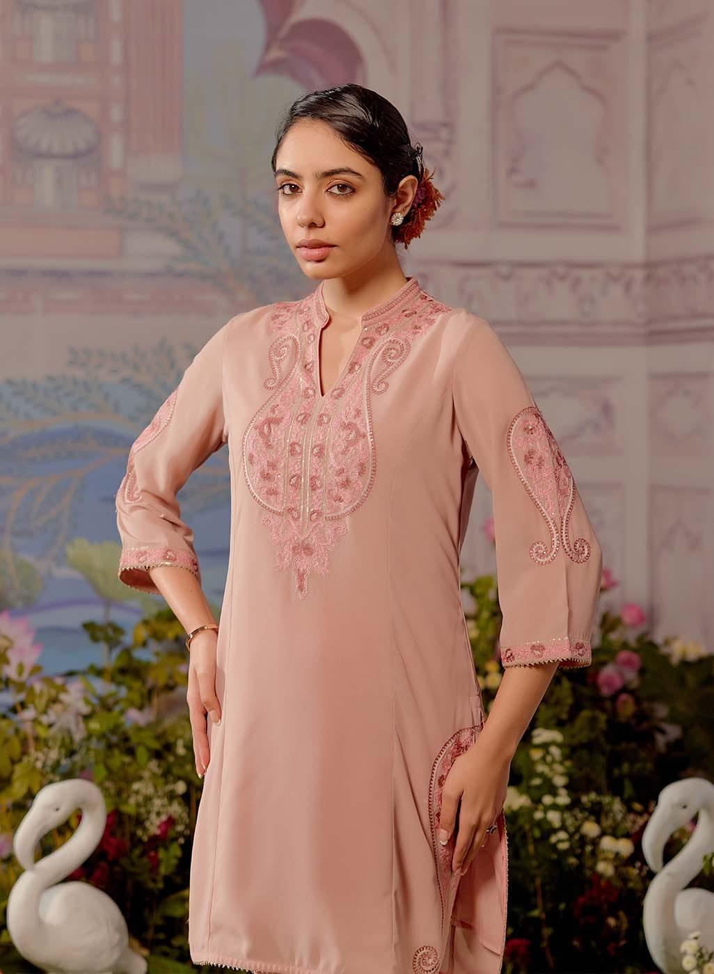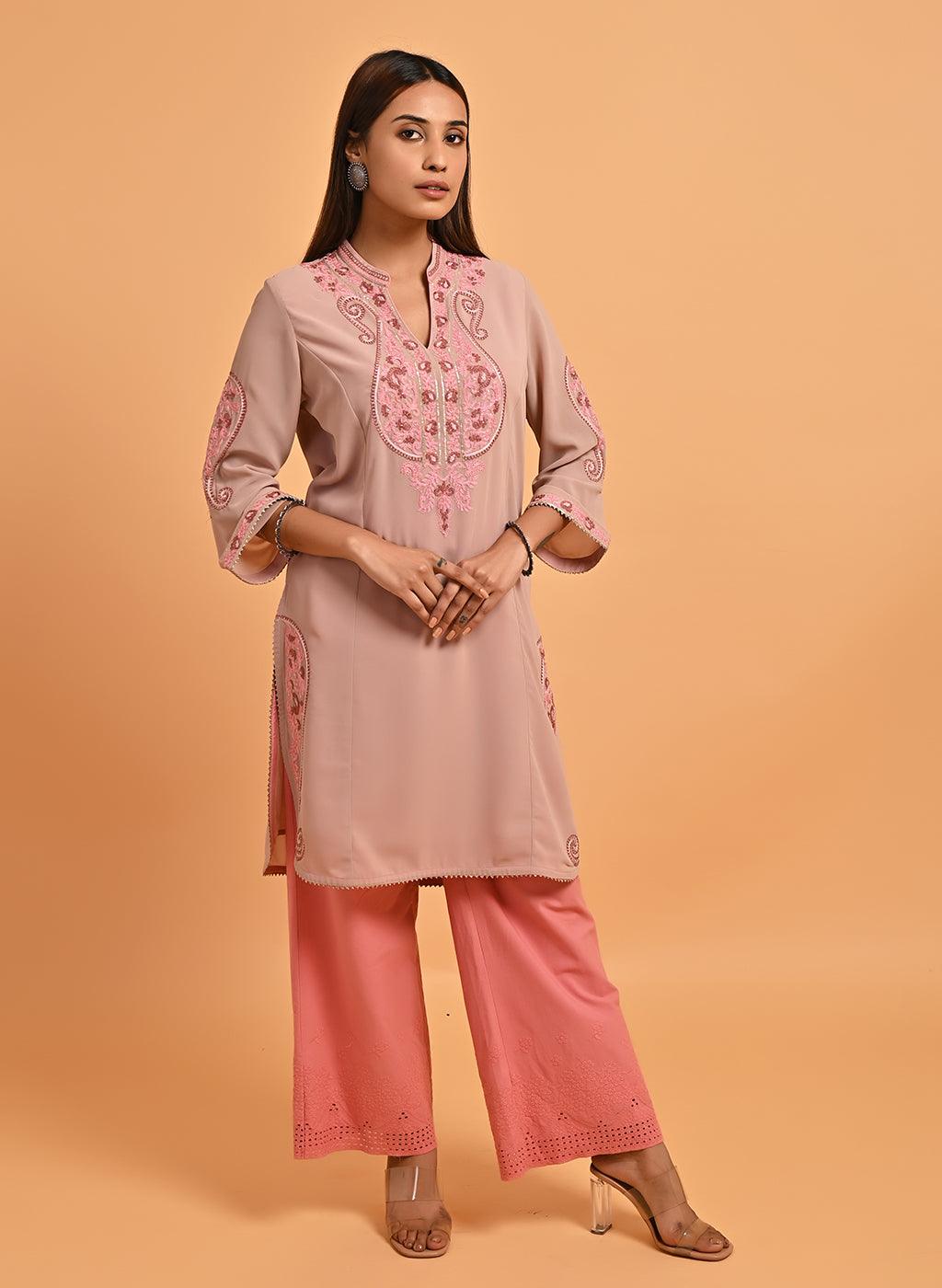 Purple Woollen Kurta for Women with Leather Collar and Sequin Work