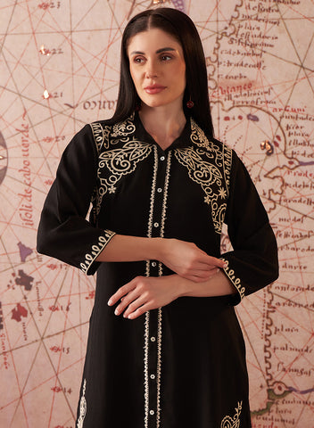 Ruhi Midnight Black Embroidered Crinkle Shirt for Women