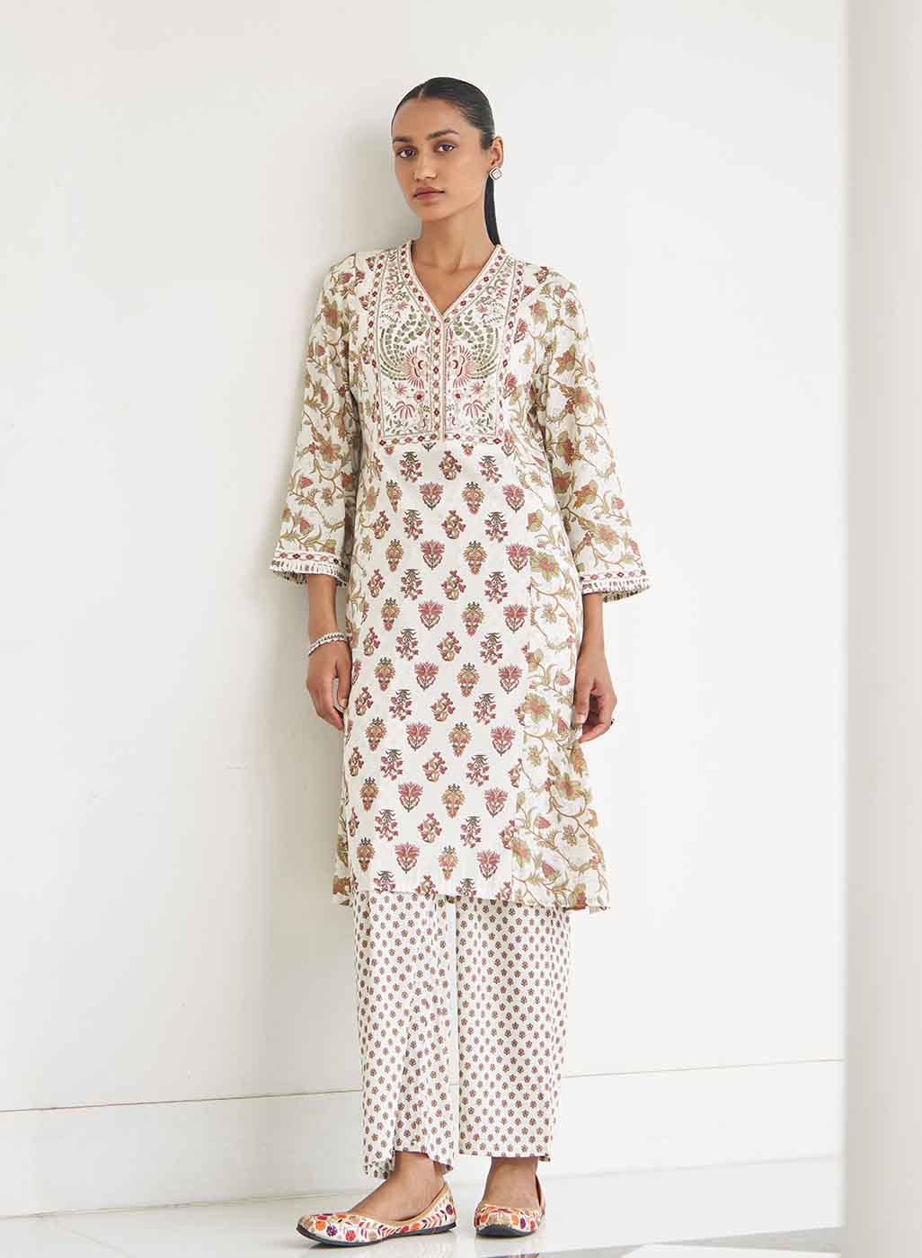 Ivory Modal Printed Kurta Set with side Paneled Design